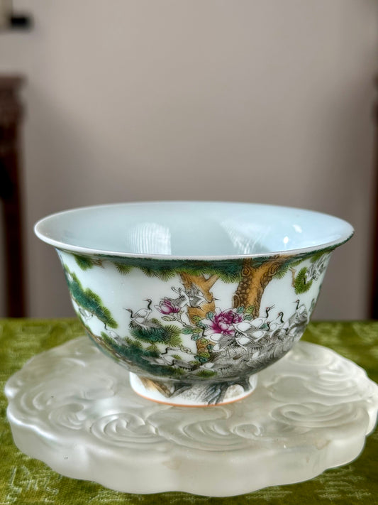 Handpainted Chinese Traditional Hundred Auspicious Cranes Enamel Falangcai High Class Ceramic Teacup