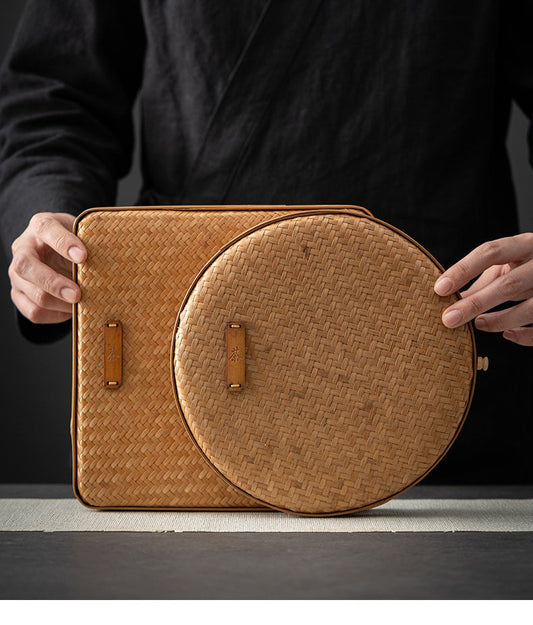 Pu'erh Cake Handmade Bamboo Weaving Storage Container Handcrafted White Tea Cake Cha Bing Container