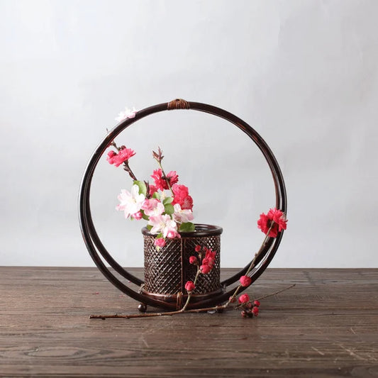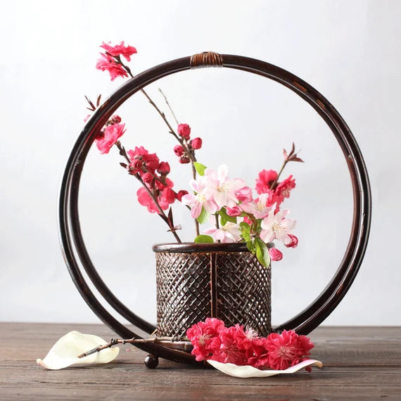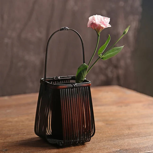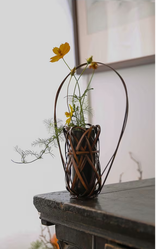 Handcrafted Bamboo Basket Weaving Vase Flower Utensil Ikebana Original Design Home Decor Zen Vase Japansese Flower Vase