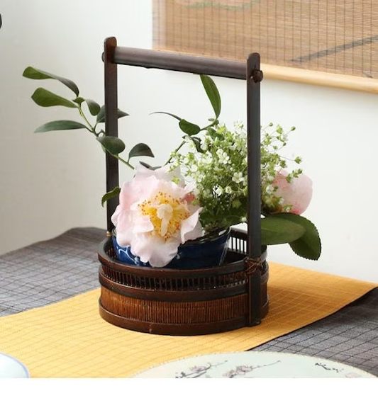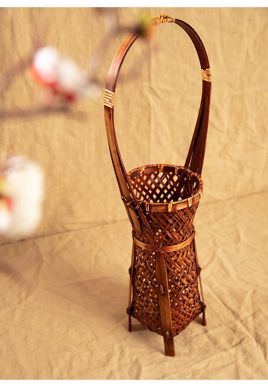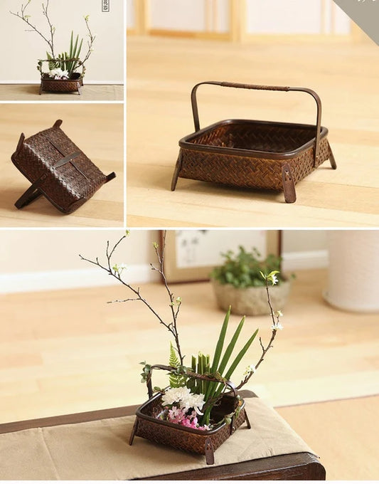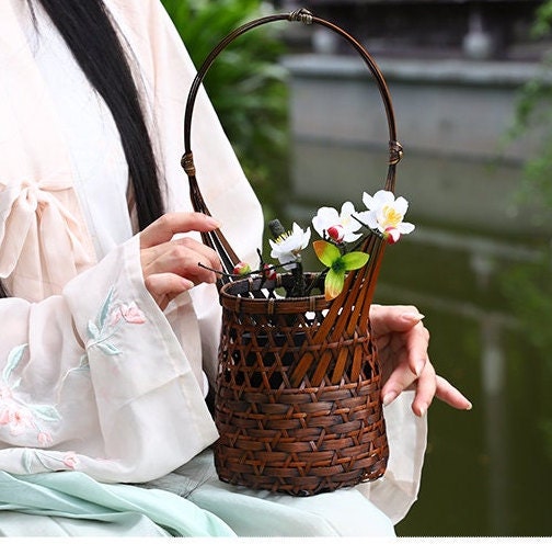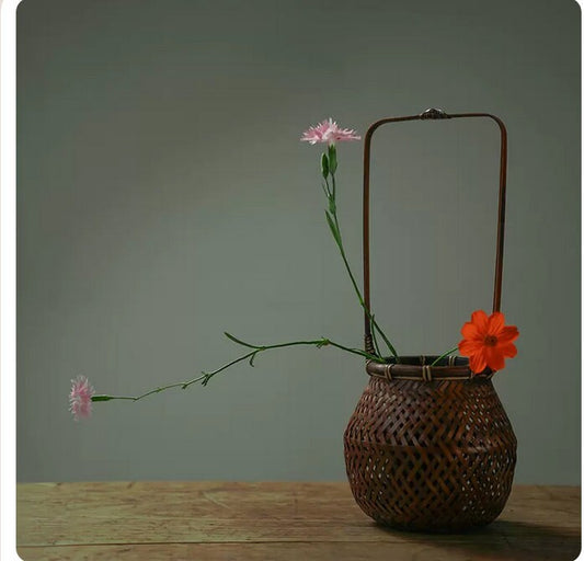 Handcrafted Bamboo Weaving Tea Basket Vase Flower Utensil Ikebana Original Design Home Decor Zen Vase Japansese Flower Vase Natural Ambiance