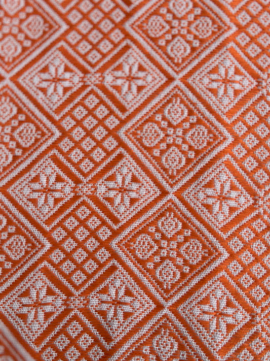 High-end Handcrafted Anise Pattern Chinese Orange White Zhuang Brocade Silk Cloth Scarf Tea Table Cloth