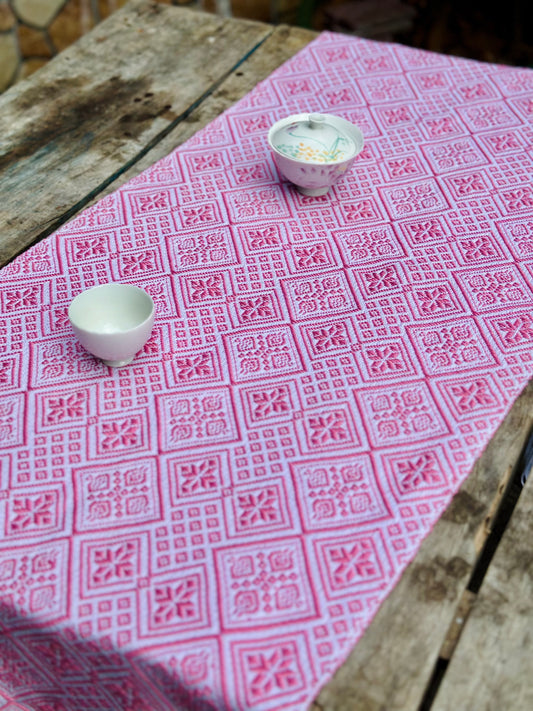 High-end Handcrafted Anise Field Pattern Chinese Pink White Zhuang Brocade Silk Cloth Scarf Tea Table Cloth
