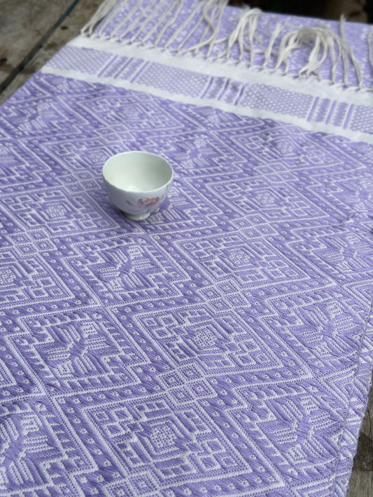 High-end Handcrafted Butterfly Field Pattern Chinese Purple White Zhuang Brocade Silk Cloth Scarf Tea Table Cloth