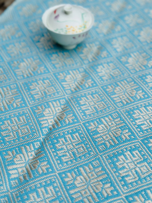 High-end Handcrafted Anise Pattern Chinese Glacier Blue Pattern Zhuang Brocade Silk Cloth Scarf Tea Table Cloth