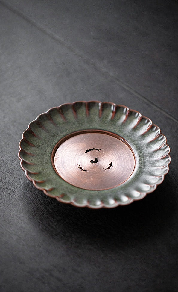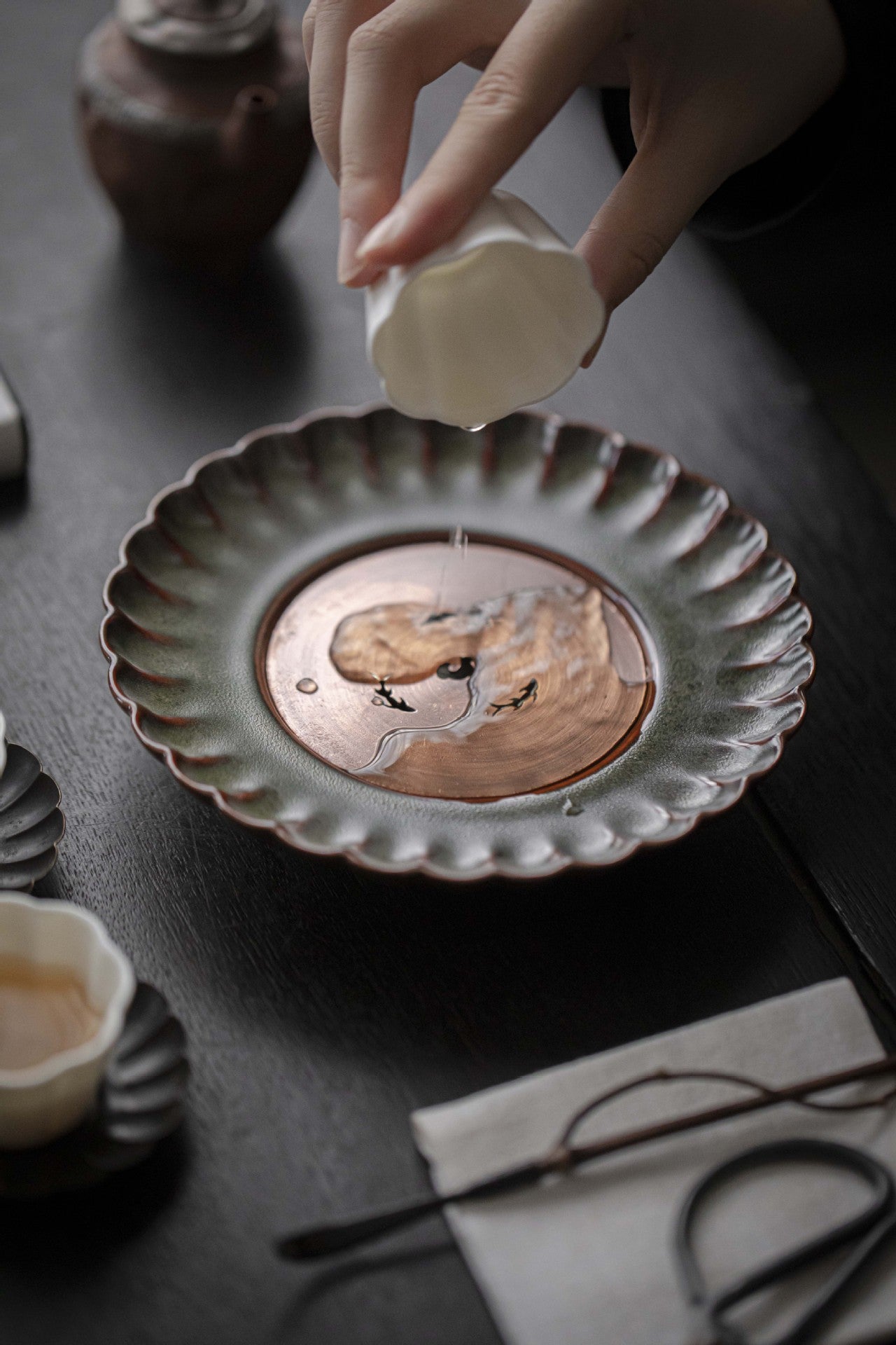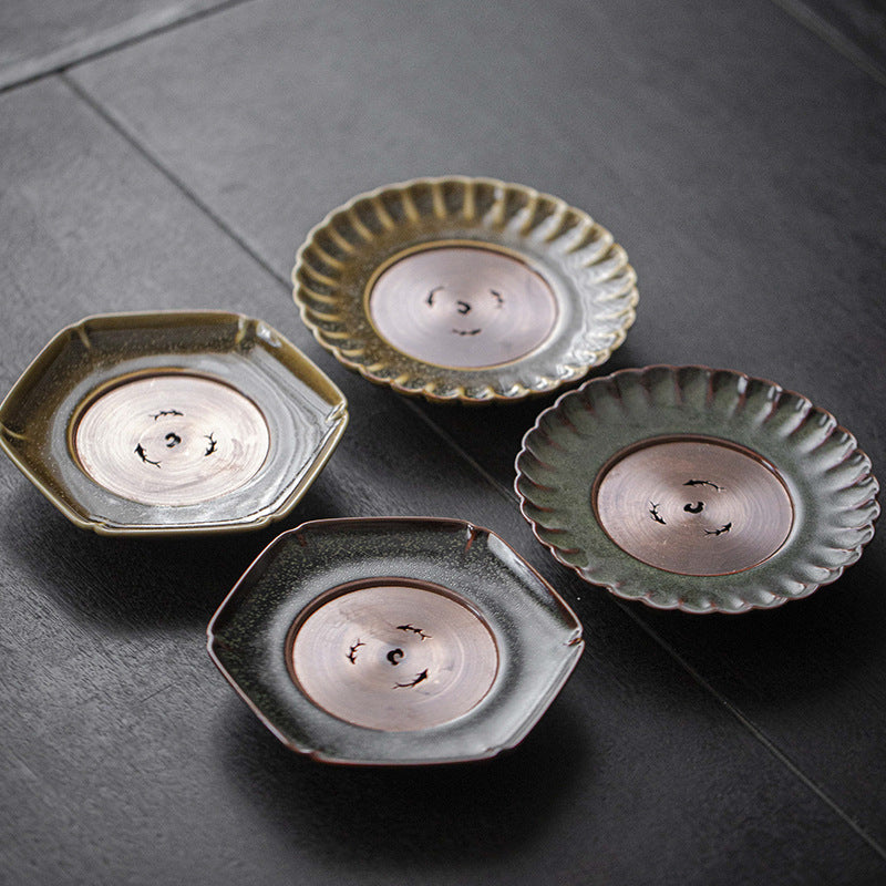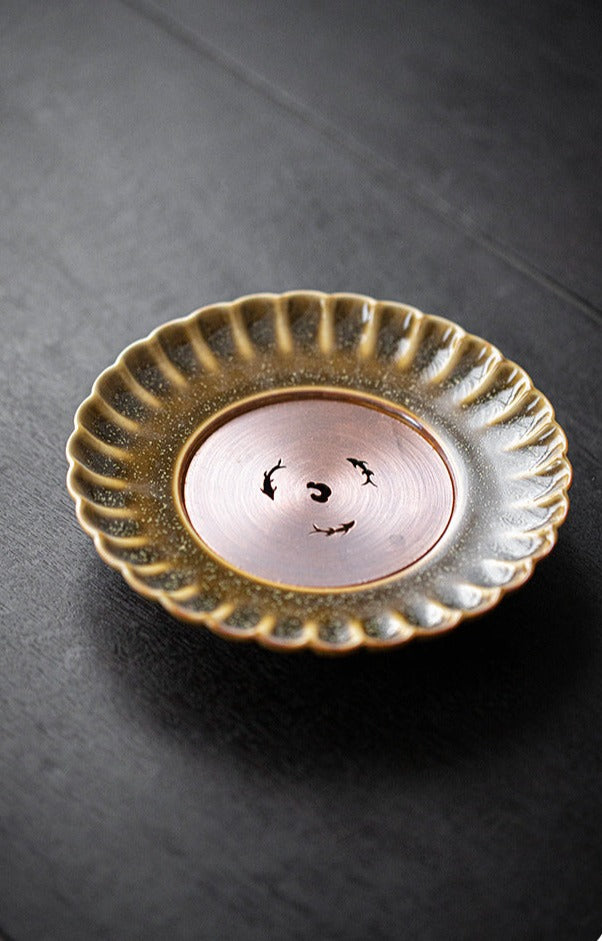 Antique Copper Style Tea Tray Tea Dry Ceramic Tea Boat Chinese Master Artwork Teapot Holder Tea Boat