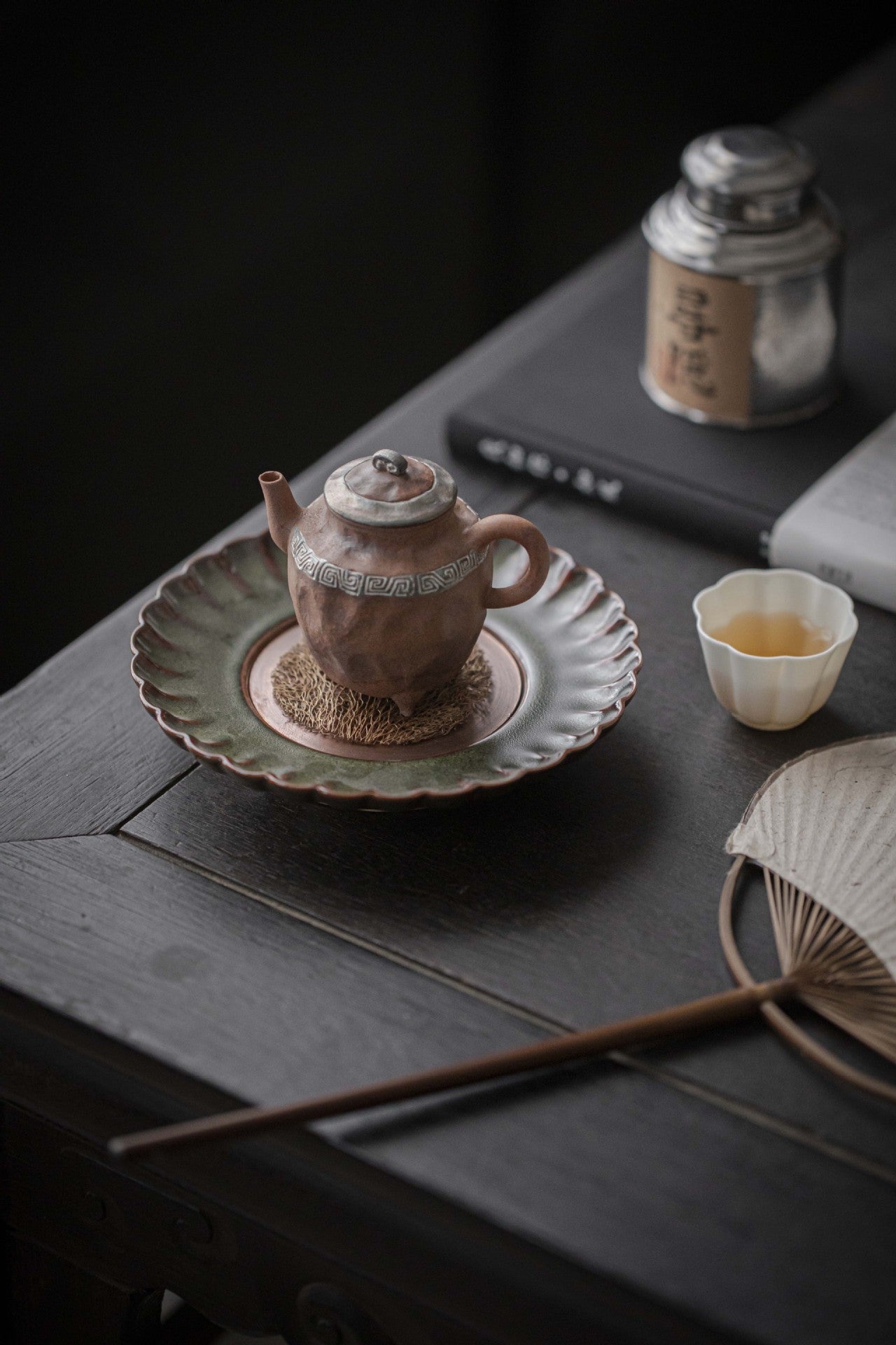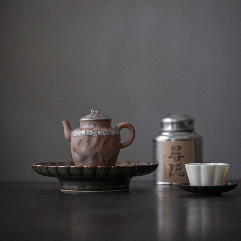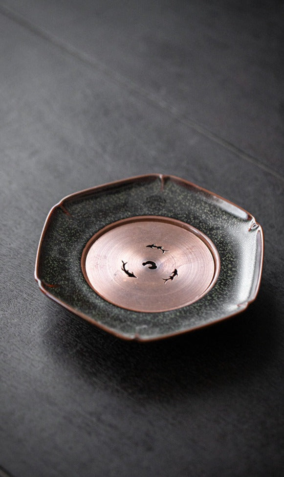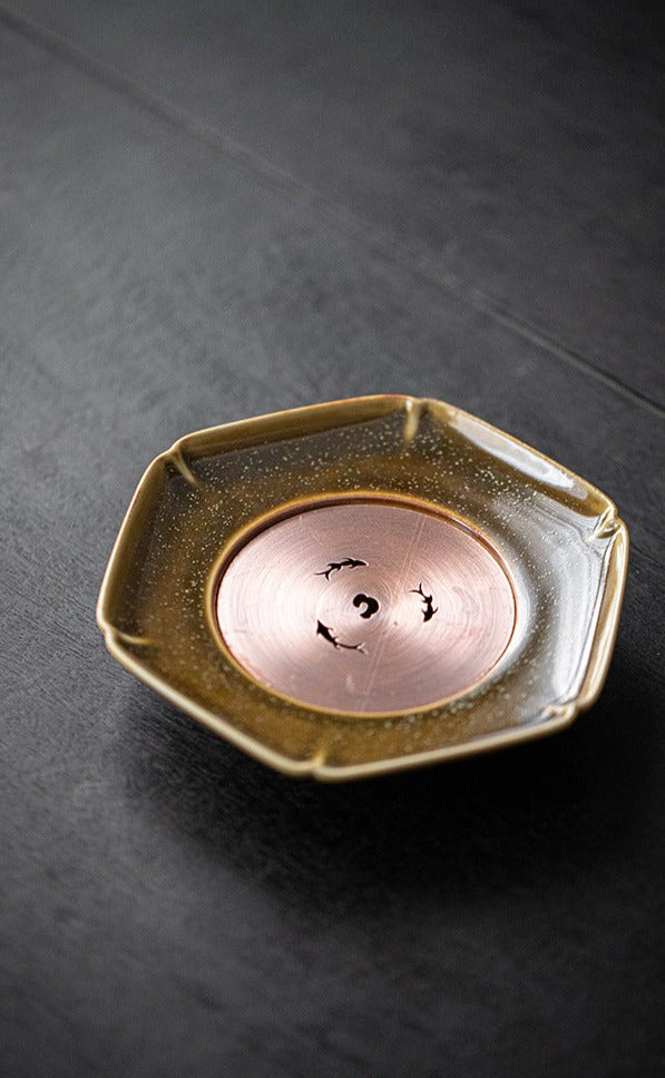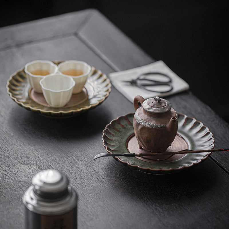 Antique Copper Style Tea Tray Tea Dry Ceramic Tea Boat Chinese Master Artwork Teapot Holder Tea Boat