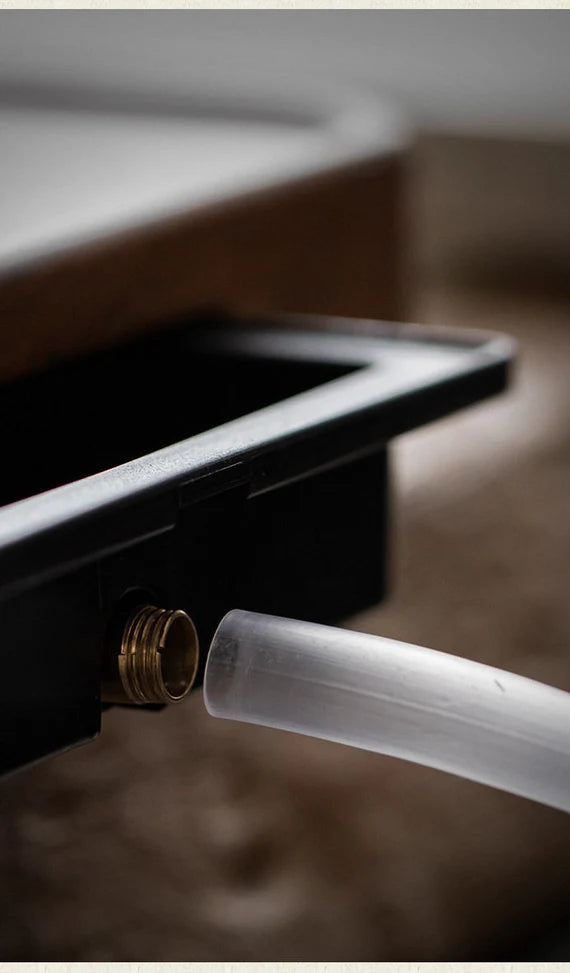 You can drain away water through the plastic tube as the shown photo.