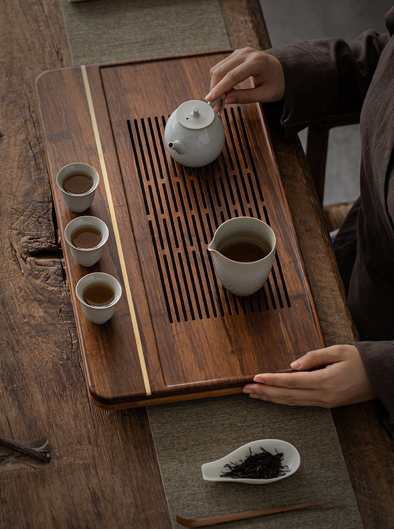 Bamboo Tea Tray Tea water Storage Large Drainage Dry Large Waterproof Tea Table Wet Tea Tray Tea Drainer
