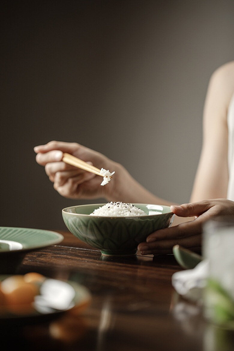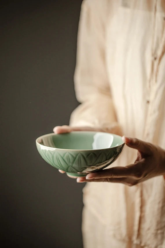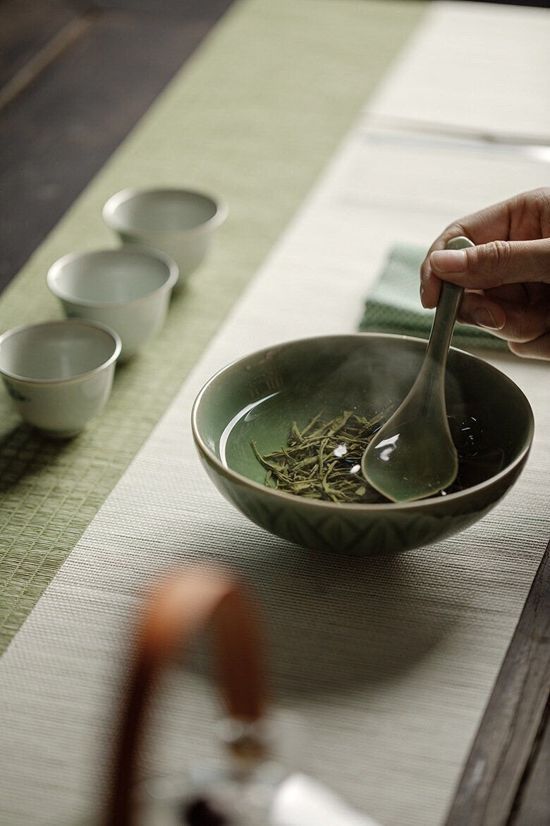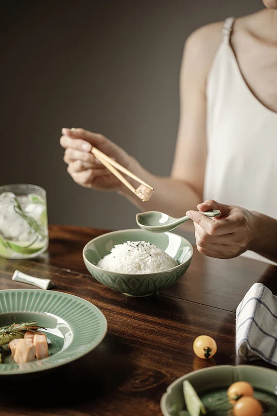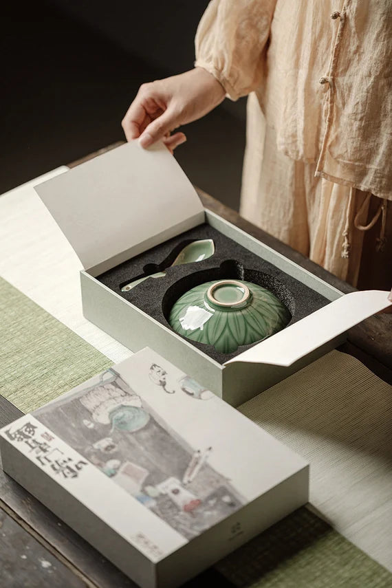 Celadon bowl tea set kung fu tea set review bowl one person eating tableware food bowl spoon Chinese style