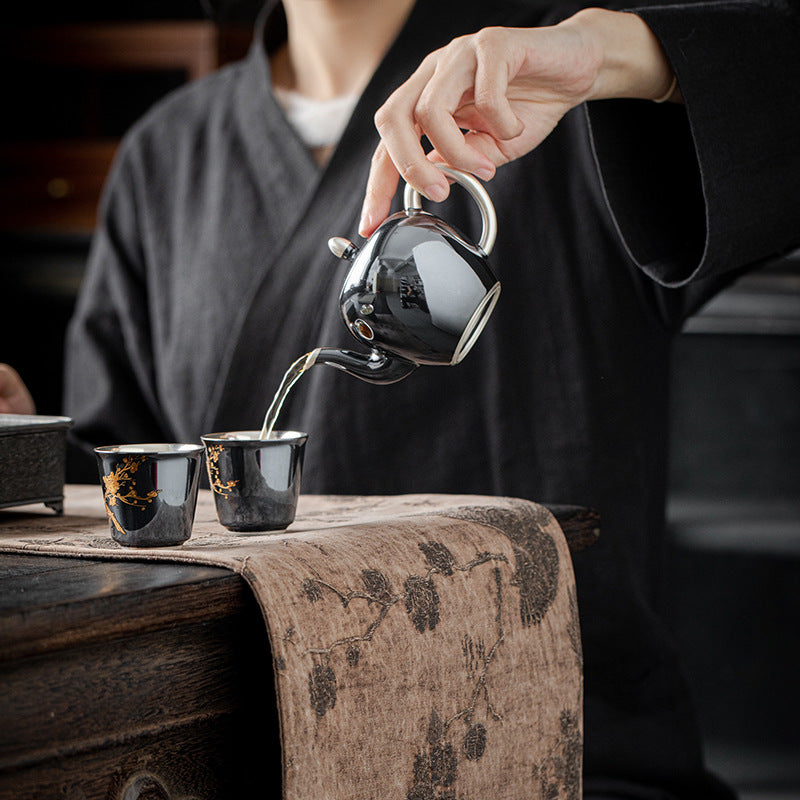 Chinese canton Silk Tea Table Cloth Natural Dye Classic Style Antique Style Chabu Two Sides