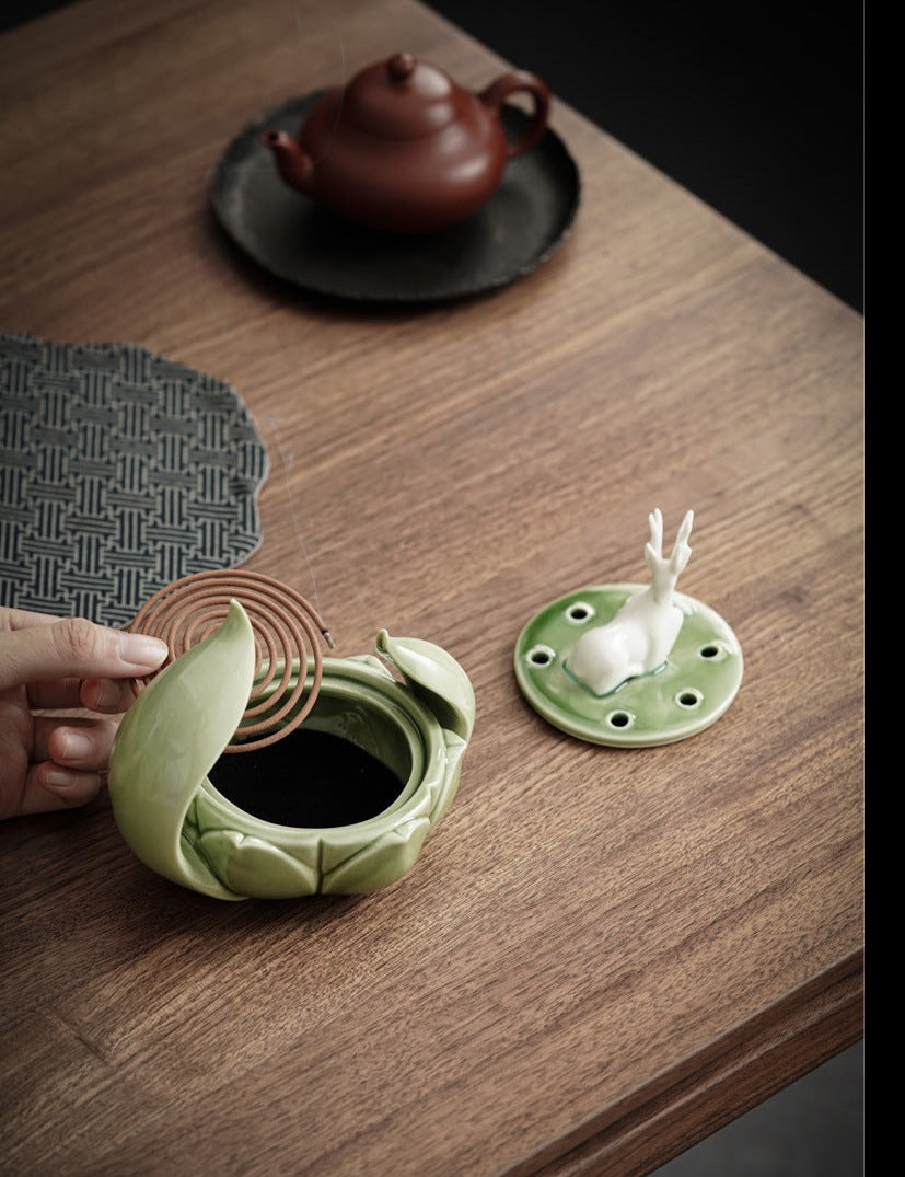Chinese Ceramic Deer Incense Burner Zen Incnese Plug Incense Holder