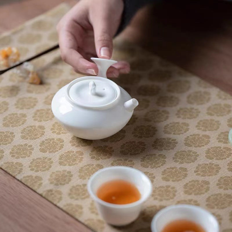 This lovely sidehandle teapot is made of Dehua fine pottery clay. It has a small and cute shape, warm and delicate color, and is as smooth as fat. The overall style is modern yet elegant, which shows the excellent craftsmanship.