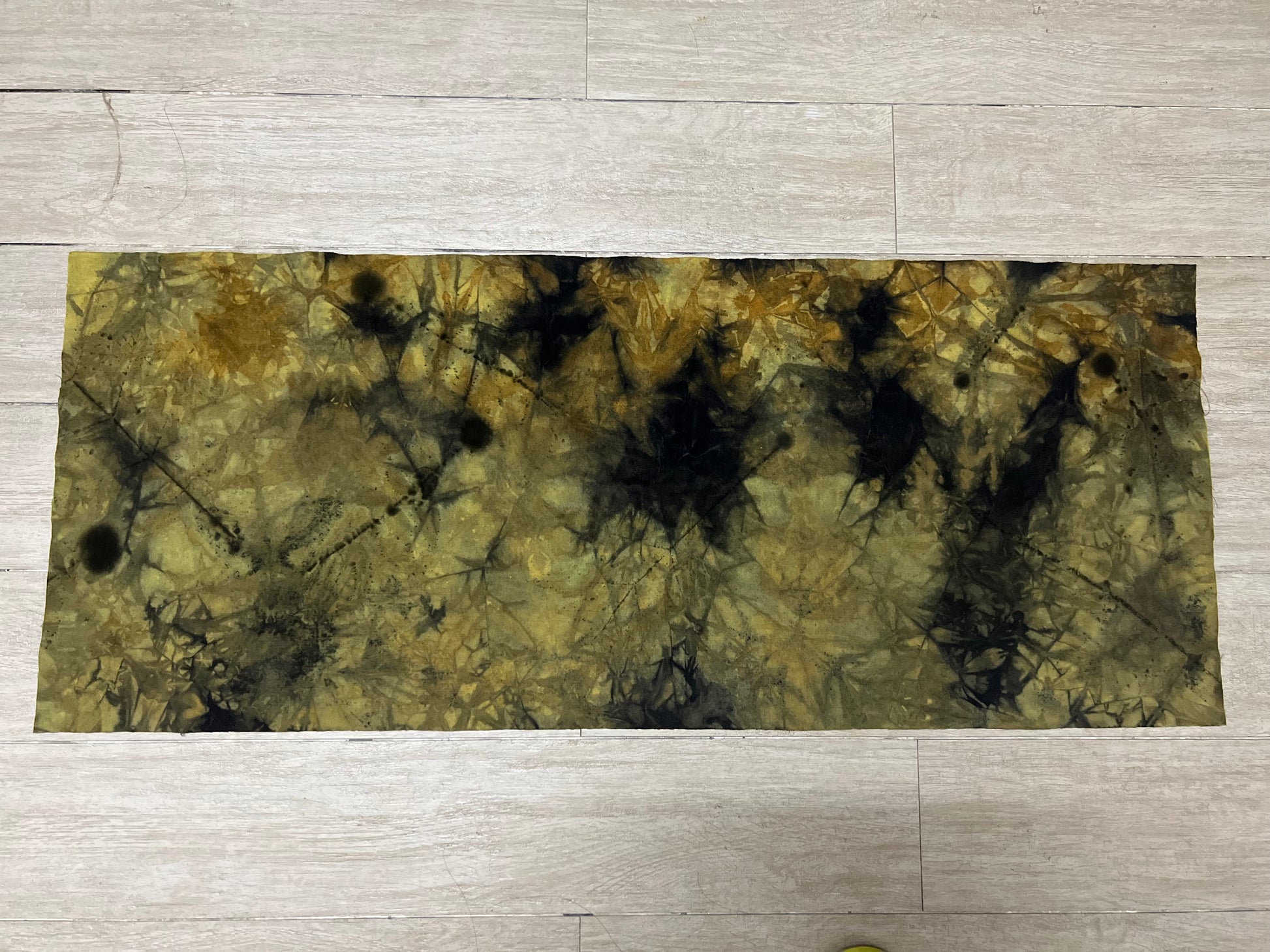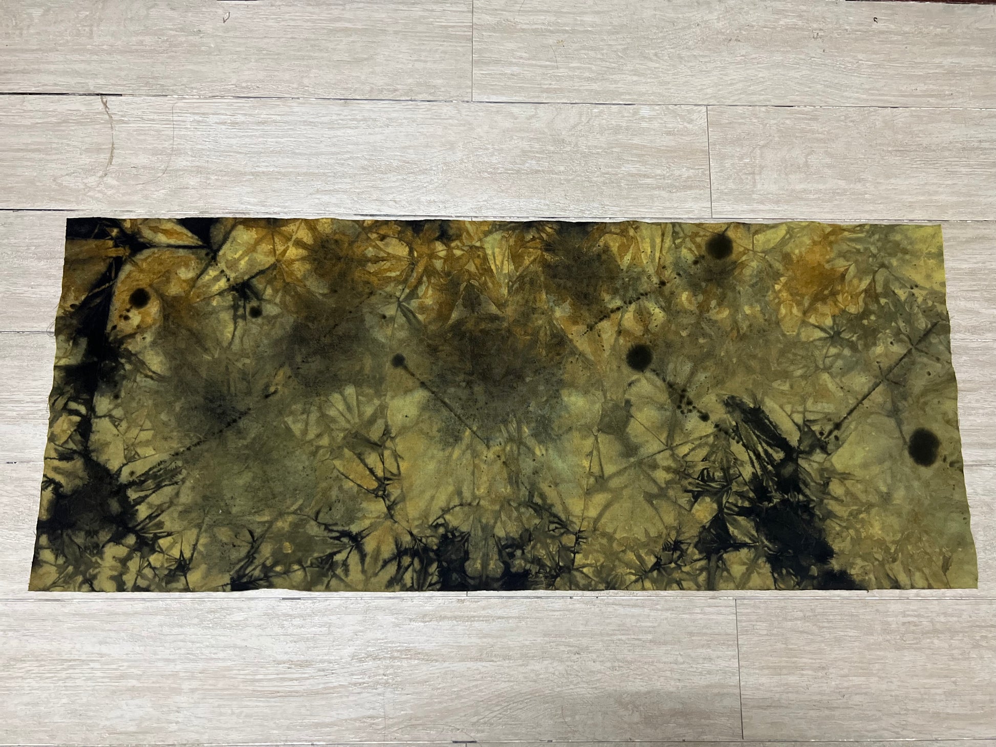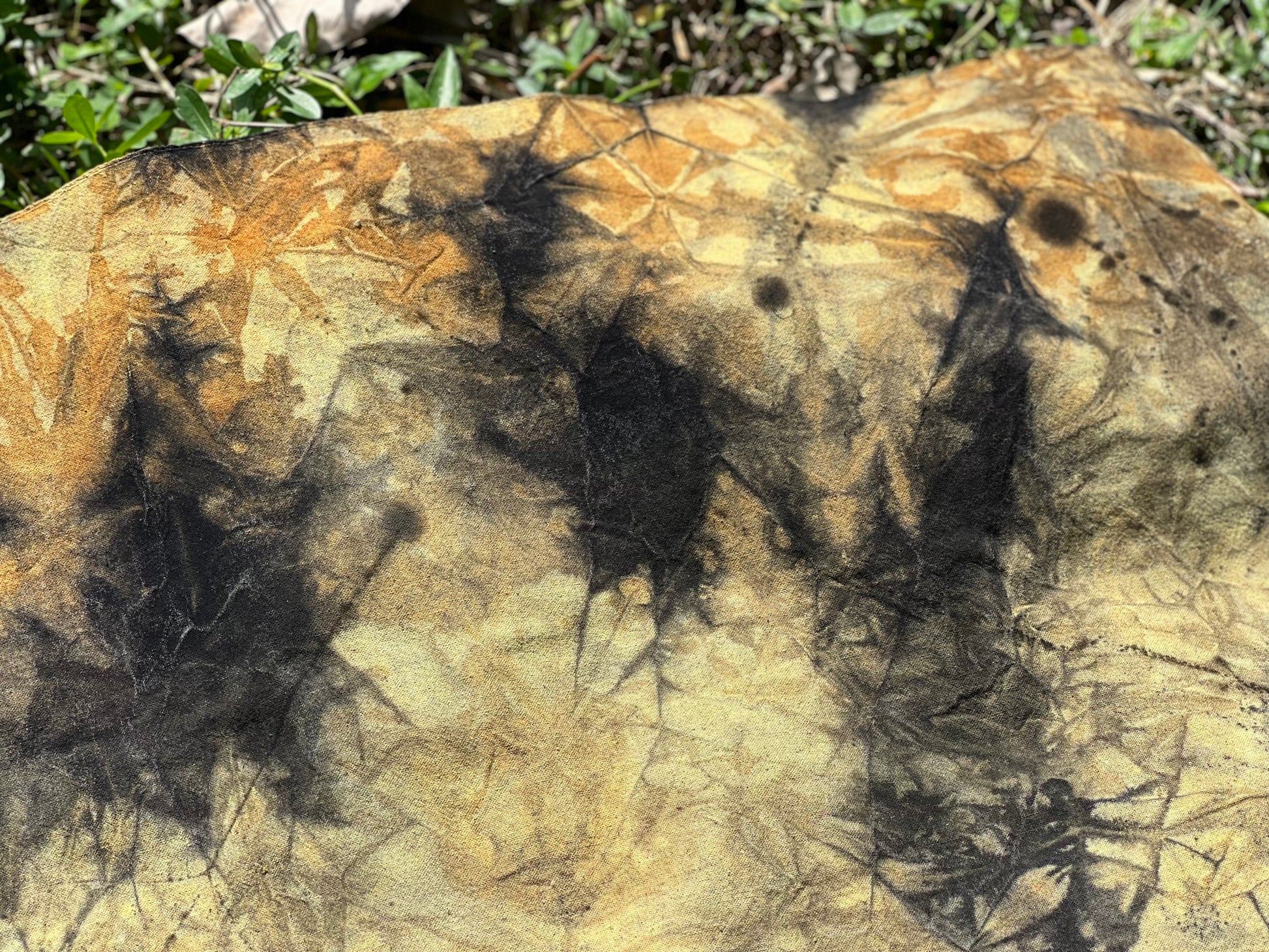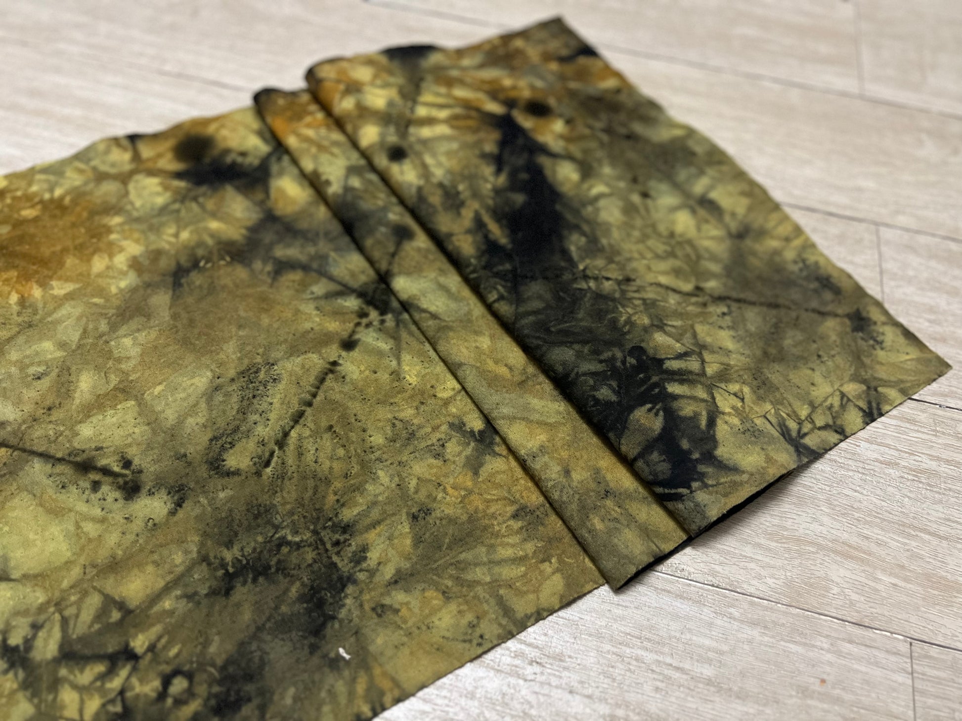 The magic of plant dyeing is not only the color, but the texture of the fabric changes significantly. After the soft cotton is dyed with natural plants, and then printed into patterns using plant heat transfer technology, it can be transformed into something as tough into a tough and leathery fabric.