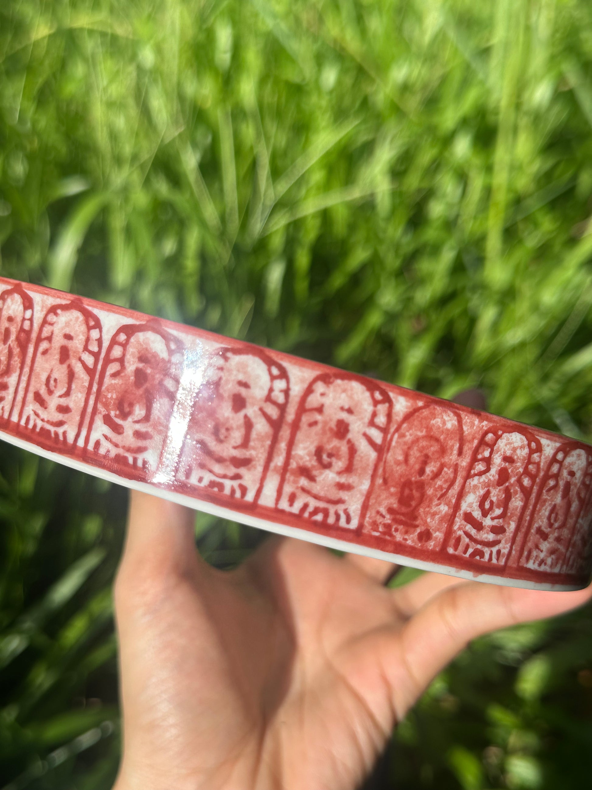 The bottom pattern is an enameled hand painted Mandala flower and Dunhuang figures.