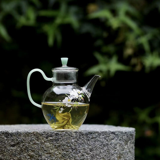 Antique Style Glass Kettle Cold Brewing Teapot High Temperature Resistant Glass Tea Set Holding Pot Green Pot