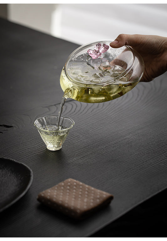 Antique Style Glass Kettle Cold Brewing Teapot High Temperature Resistant Glass Tea Set Glass Butterly Lid