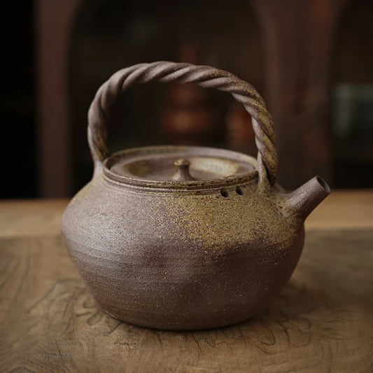 Antique Style Glass Kettle Cold Brewing Teapot High Temperature Resistant Glass Tea Set Rattan Beam Lifting Pot