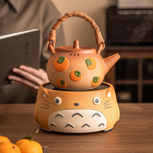 Japanese Totoro Painting Style Kettle Stove Set Handmade Charcoal Stove Set Chinese Master Pottery