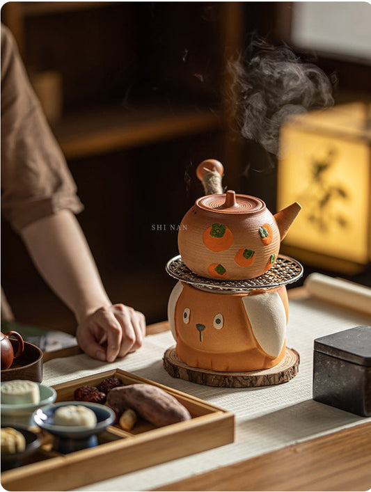 Japanese Style Orange Dog Kettle Stove Set Handmade Charcoal Stove Set Chinese Master Pottery
