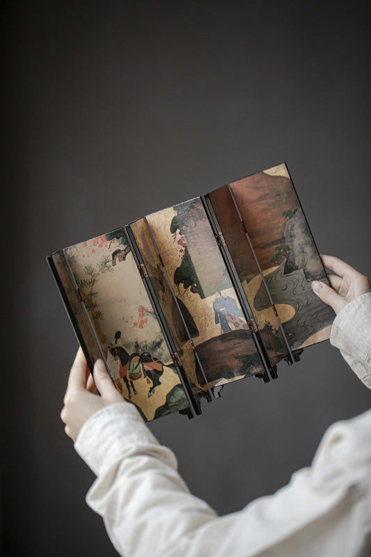 Chinese Original Design Wooden Folding Screen Ornaments Tea Ceremony Home Zen Retro Desktop Decoration