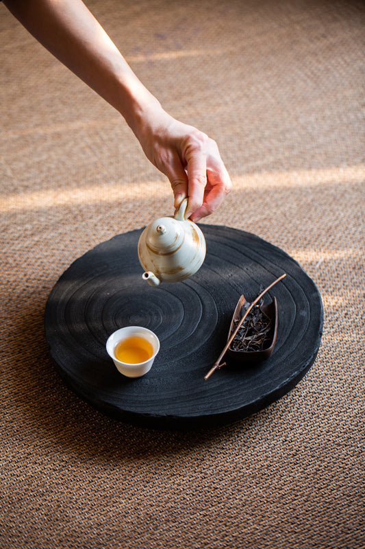 Japanese-Style Solid Camphor Wood Tea Table Handcrafted Original Round Black Wood Tea Boat Tea Tray