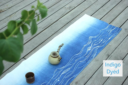 Hand Dyed Indigo Dye Tea Table Cloth Natura Cotton Dye Blue Color Chabu Chaxi