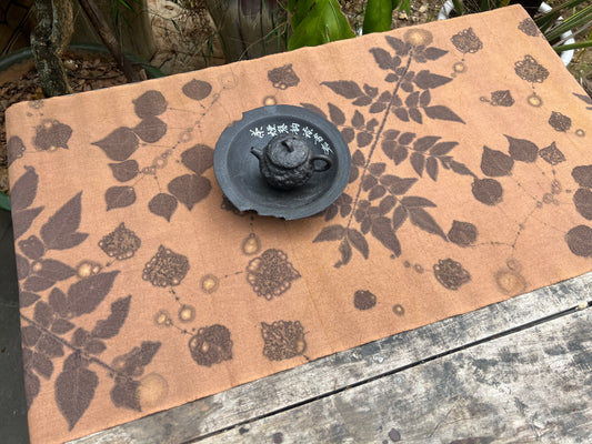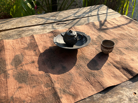 Tea Table Cloth Hand Dyed Plant Dyed Cotton Tea Mat Natura Dye Chabu Chaxi Reddish Brown Color