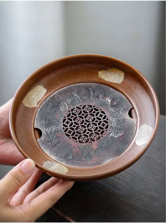Antique Copper Style Tea Tray Tea Dry Boat Chinese Master Artwork Teapot Holder Tea Boat
