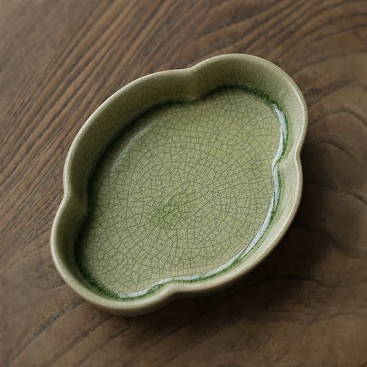 Zhangzhou Kiln Green-glazed Begonia Pot Carrying Open Teapot Holder Dry Tea Tray Chinese Master Artwork Teapot Holder Tea Boat