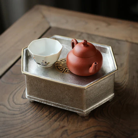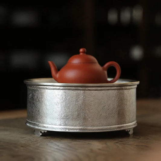 Tin Tea Tray Handmade Forging Chaozhou Antique Style Classic Chinese Master Artwork Teapot Holder Tea Boat
