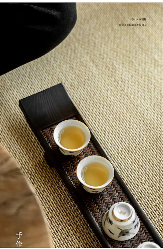 Paulownia Cup Holder Bamboo Tea Coaster Handwoven Tea Cup Tray Retro High Tea Table Dry Brewing Table Kung Fu Tea Set