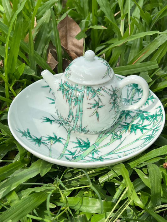 Hand Painted Chinese Famille Rose Bamboo Pattern Tea Tary Tea Boat Jingdezhen Master Ceramic Artwork