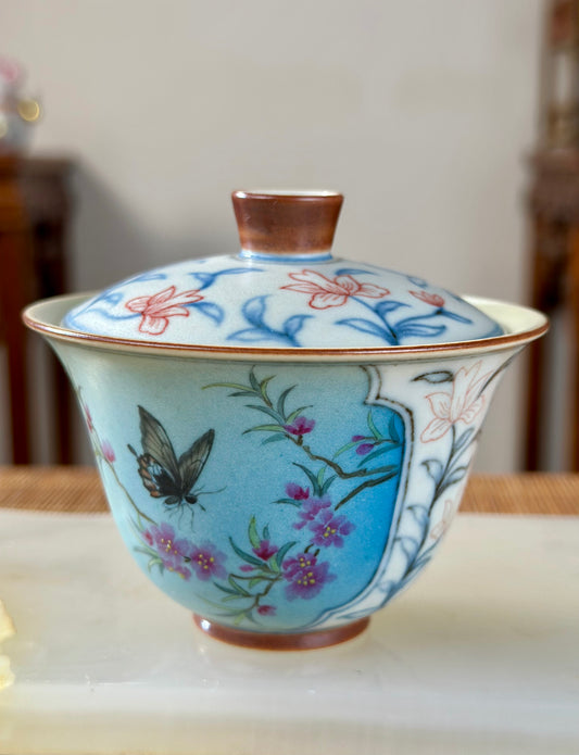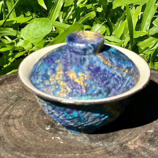Handcrafted Traditional Artwork Chinese Lacquer Ware Gaiwan pottery Purple Blue Varied Color Teacup Set