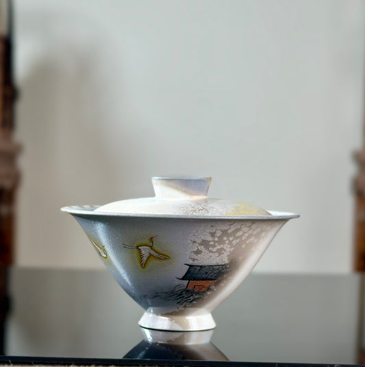 Handpainted Chinese Shino Glazed Zen Style Gaiwan Teacup Fair Cup Set Artwork