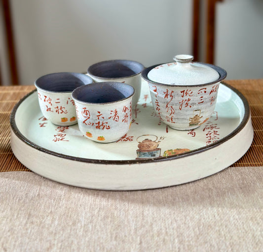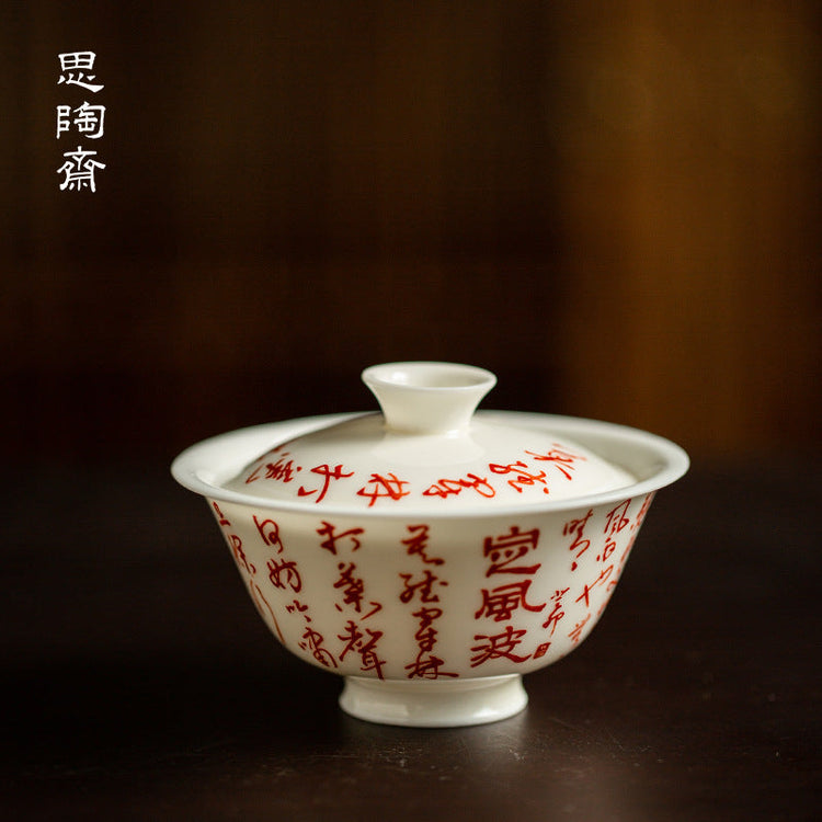 Handmade Gaiwan Artwork Zen Jingdezhen Style Chinese Hand Painted Chinese Calligraphy Pottery Gongfu Cha Teaware TeaSet