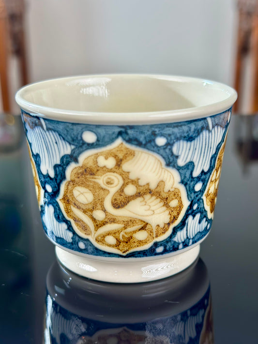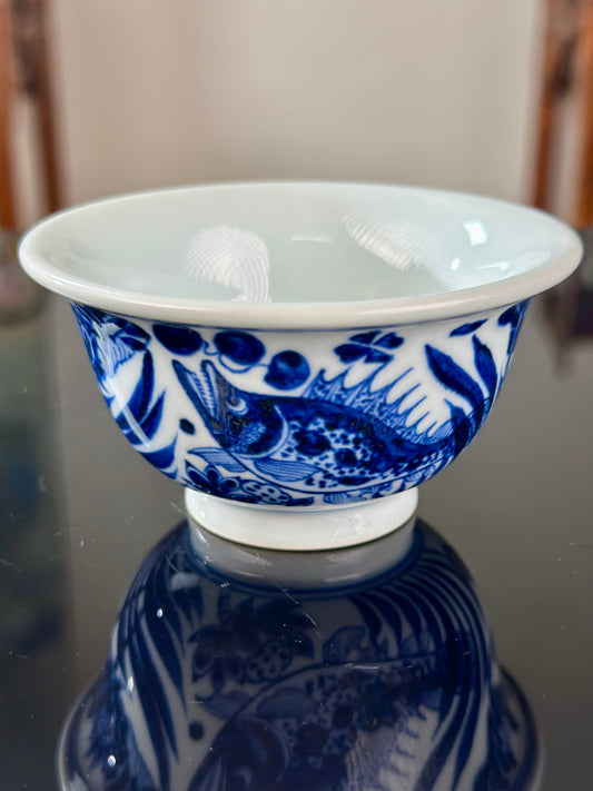 Hand Painted Chinese Blue and White Porcelain Fish and Algae Pattern Teacup Jingdezhen Master Ceramic Artwork