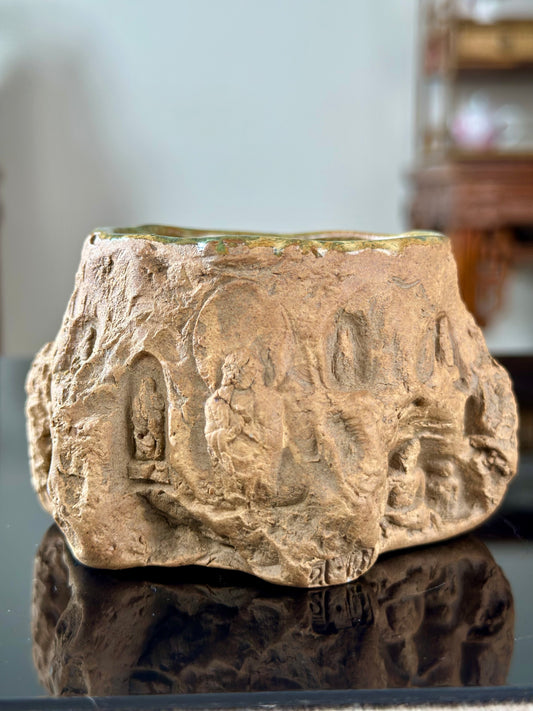 Original Designed Hand Engraved Chinese Bouddhist Bouddha Imitating Grotto Teacup