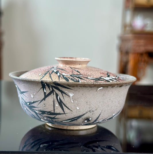 Handmade Woodfired Original Designed Snowing Bamboo Pattern Artwork Gaiwan Teacup Teapot Set