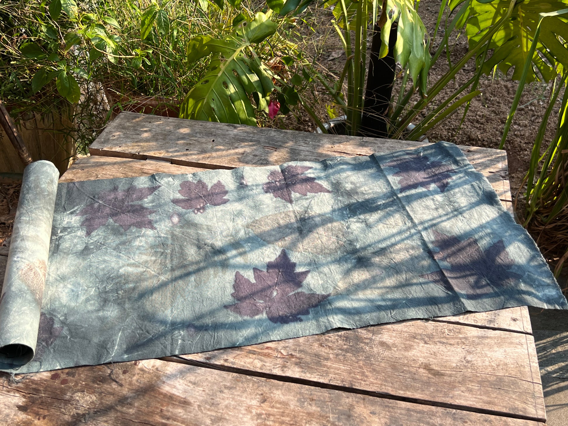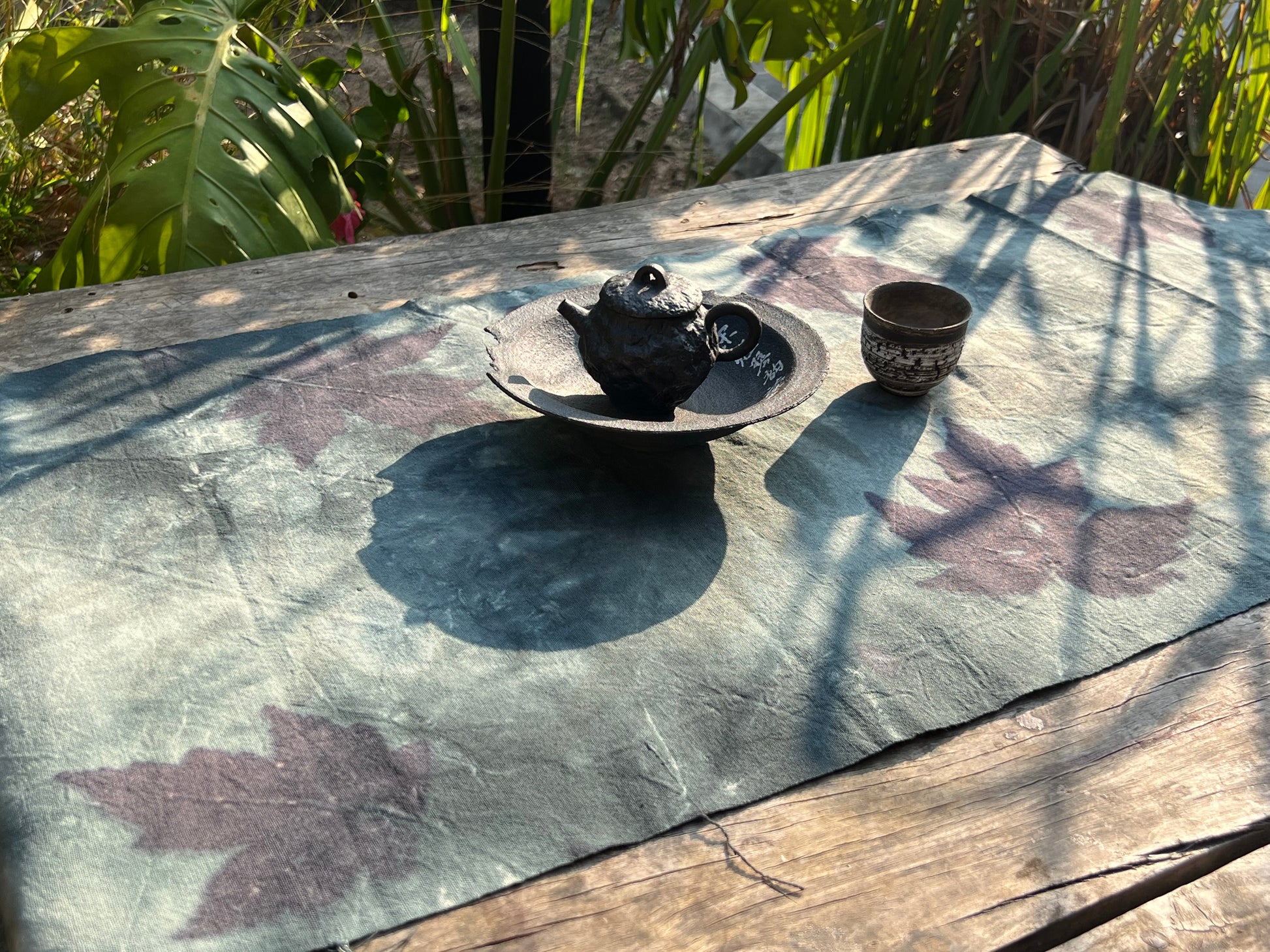 This tea cloth craft originated from the handmade plant indigo dyeing process of the Miao ethnic group in Guizhou, China. It is made using environmentally friendly, artistic and healthy techniques, and then uses plant heating transfer print technology to convert the plant pattern to make a natural tea mat with the flavor of natural plants.