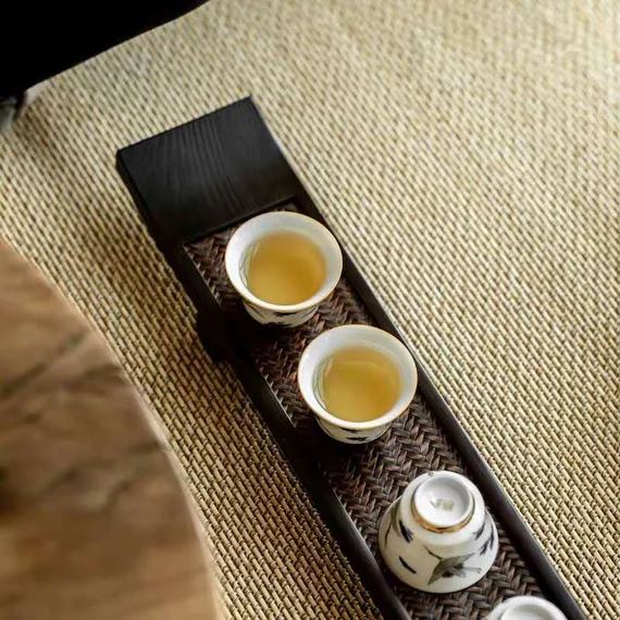 Paulownia Cup Holder Bamboo Tea Coaster Handwoven Tea Cup Tray Retro High Tea Table Dry Brewing Table Kung Fu Tea Set