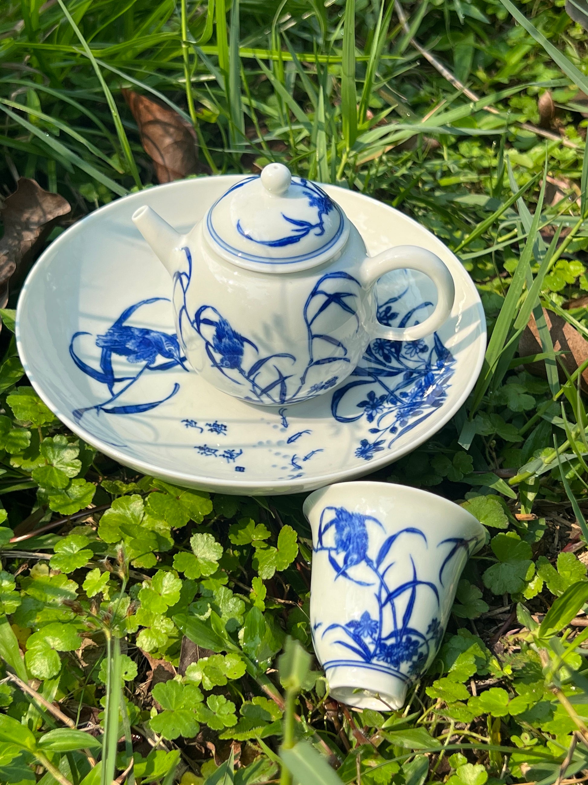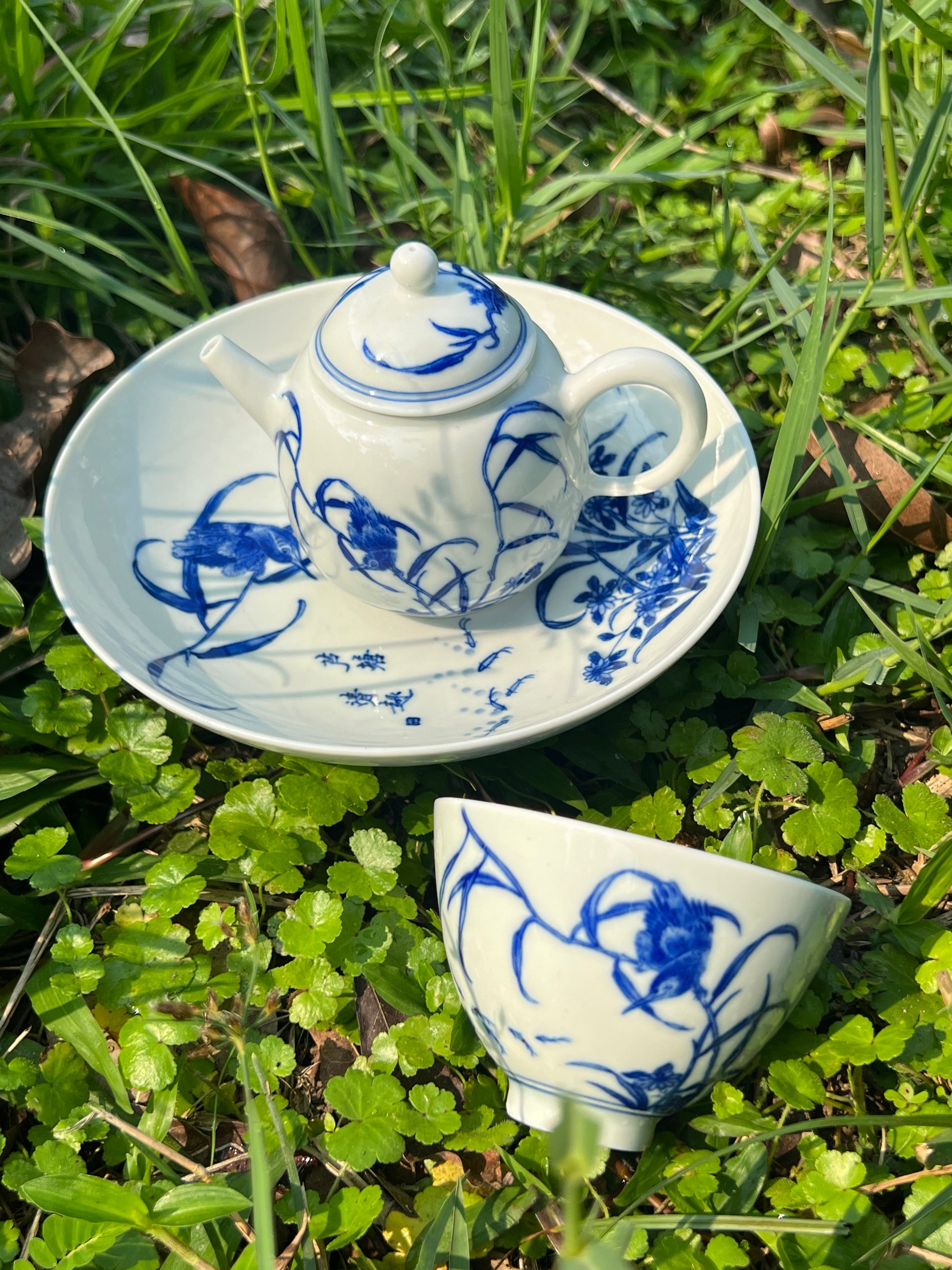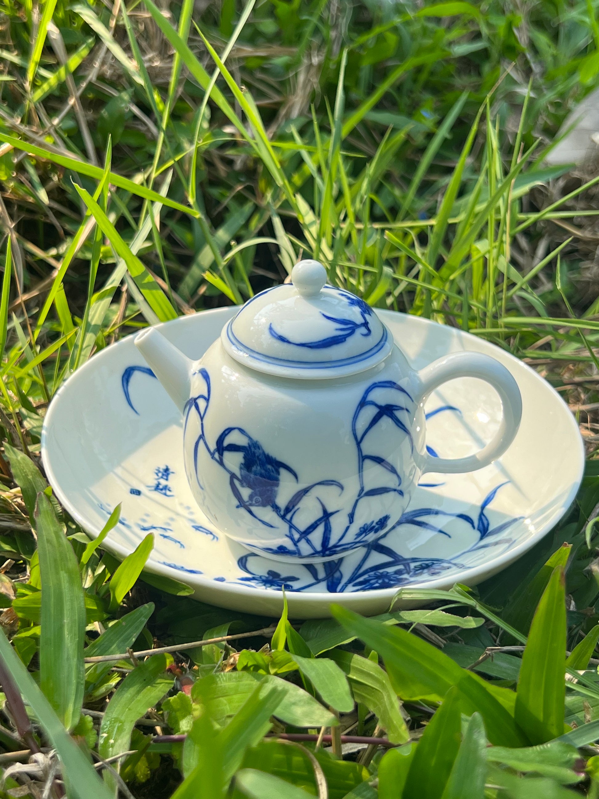 100% Handpainted Chinese Jingdezhen Ceramic Fine China Blue White Porcelain Flower Bird Pattern Qinghuaci