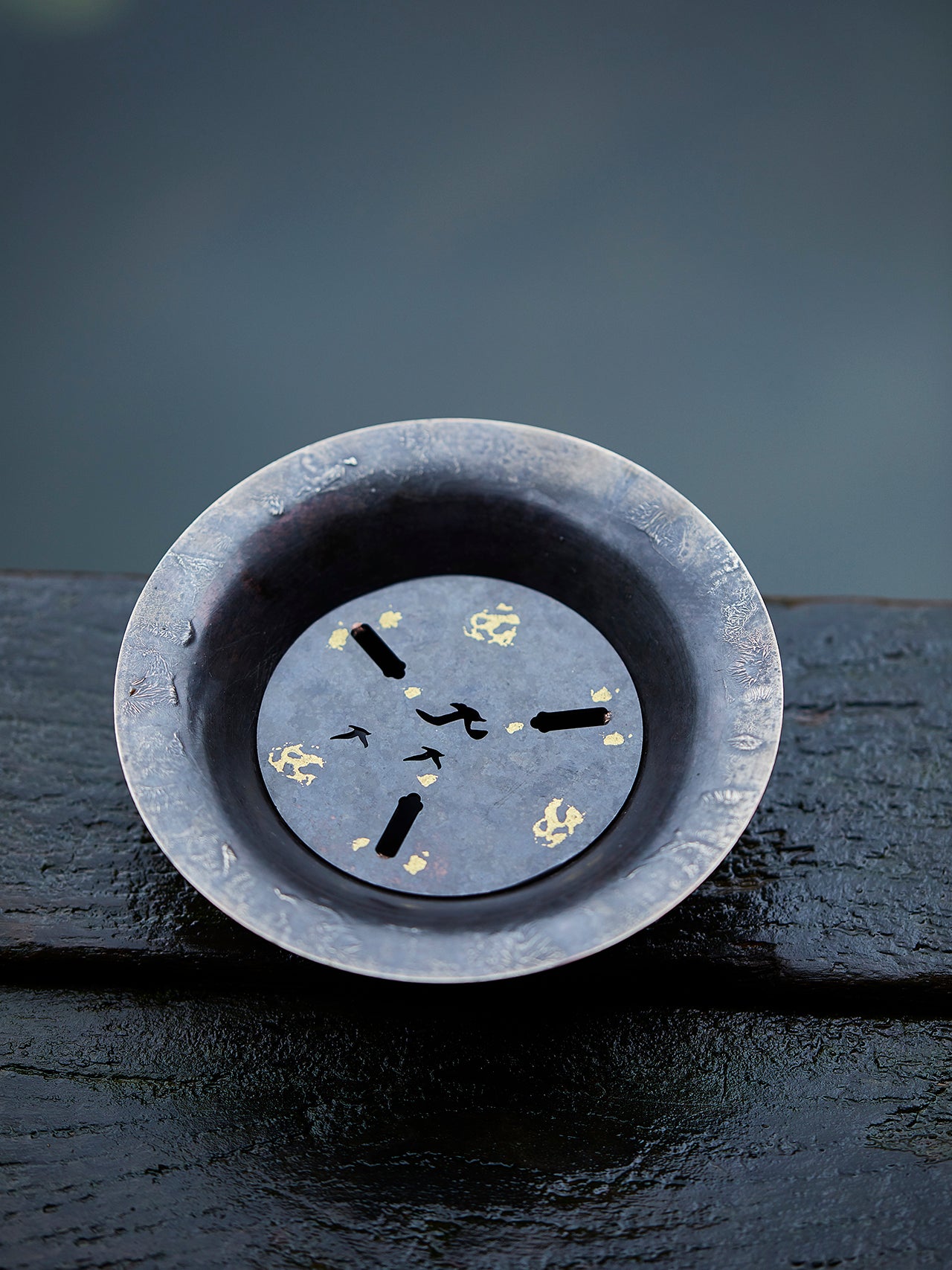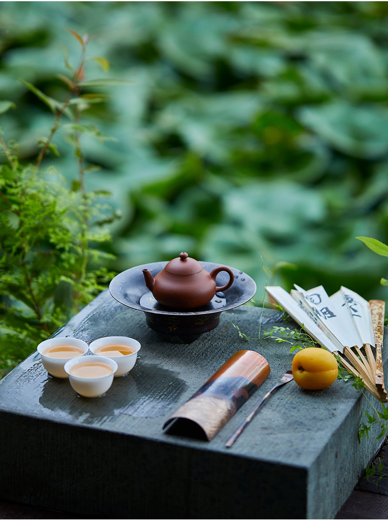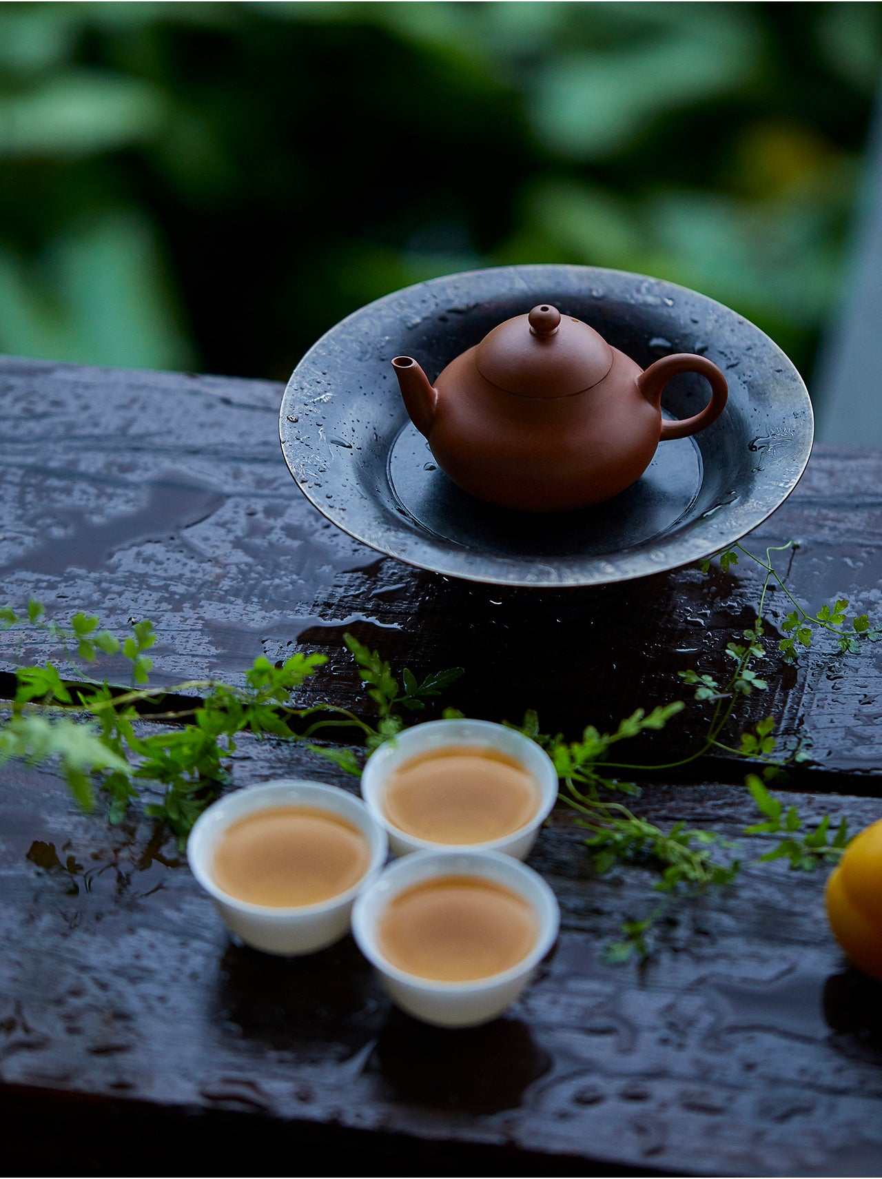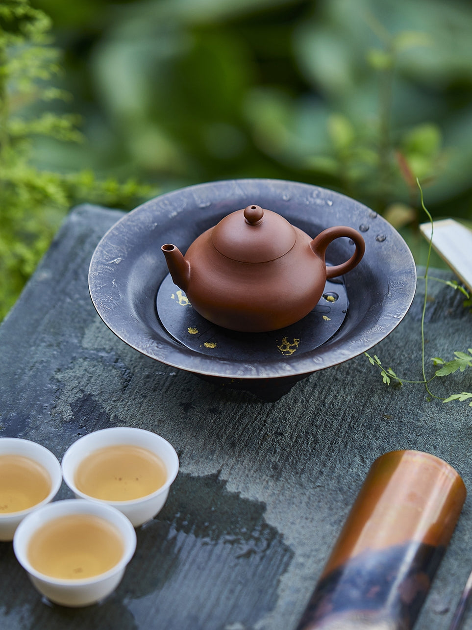 this tea tray is a hand-forged by experienced Chaozhou tin artisans ,the edge of this tea boat is made of silver gilt. The entire tray is made of copper.