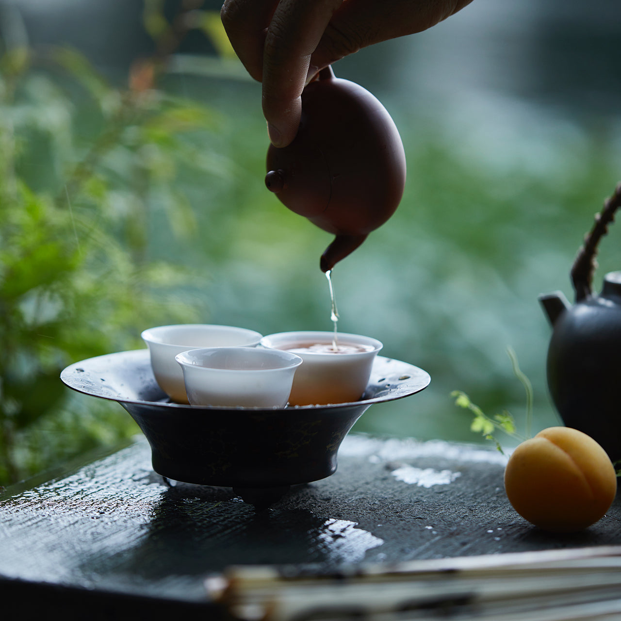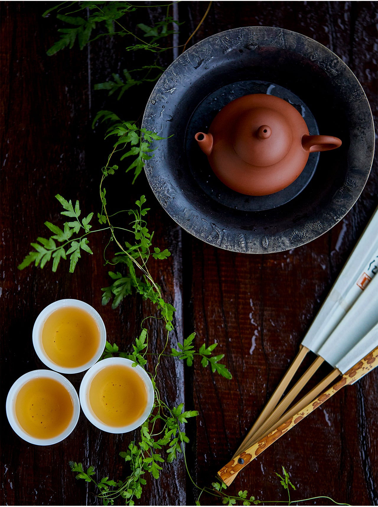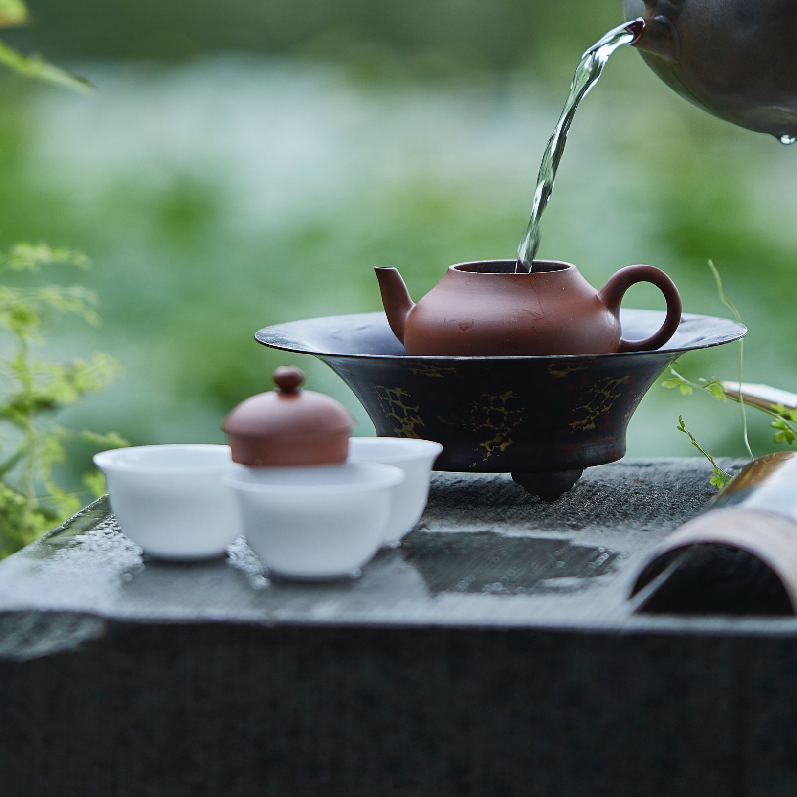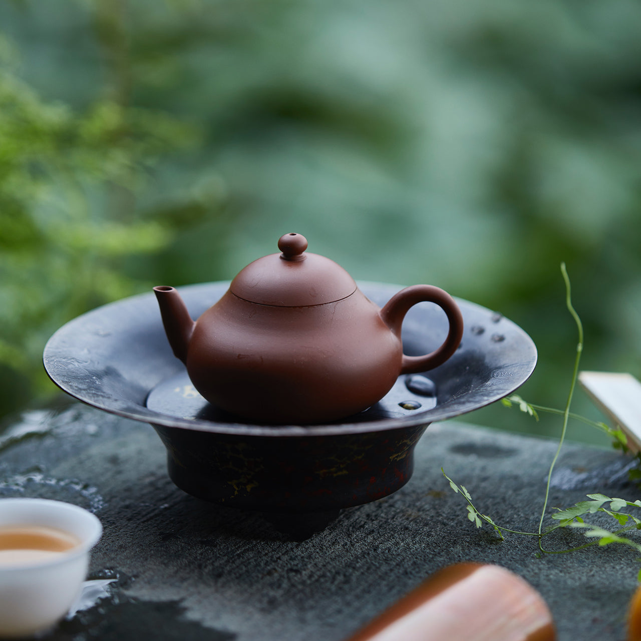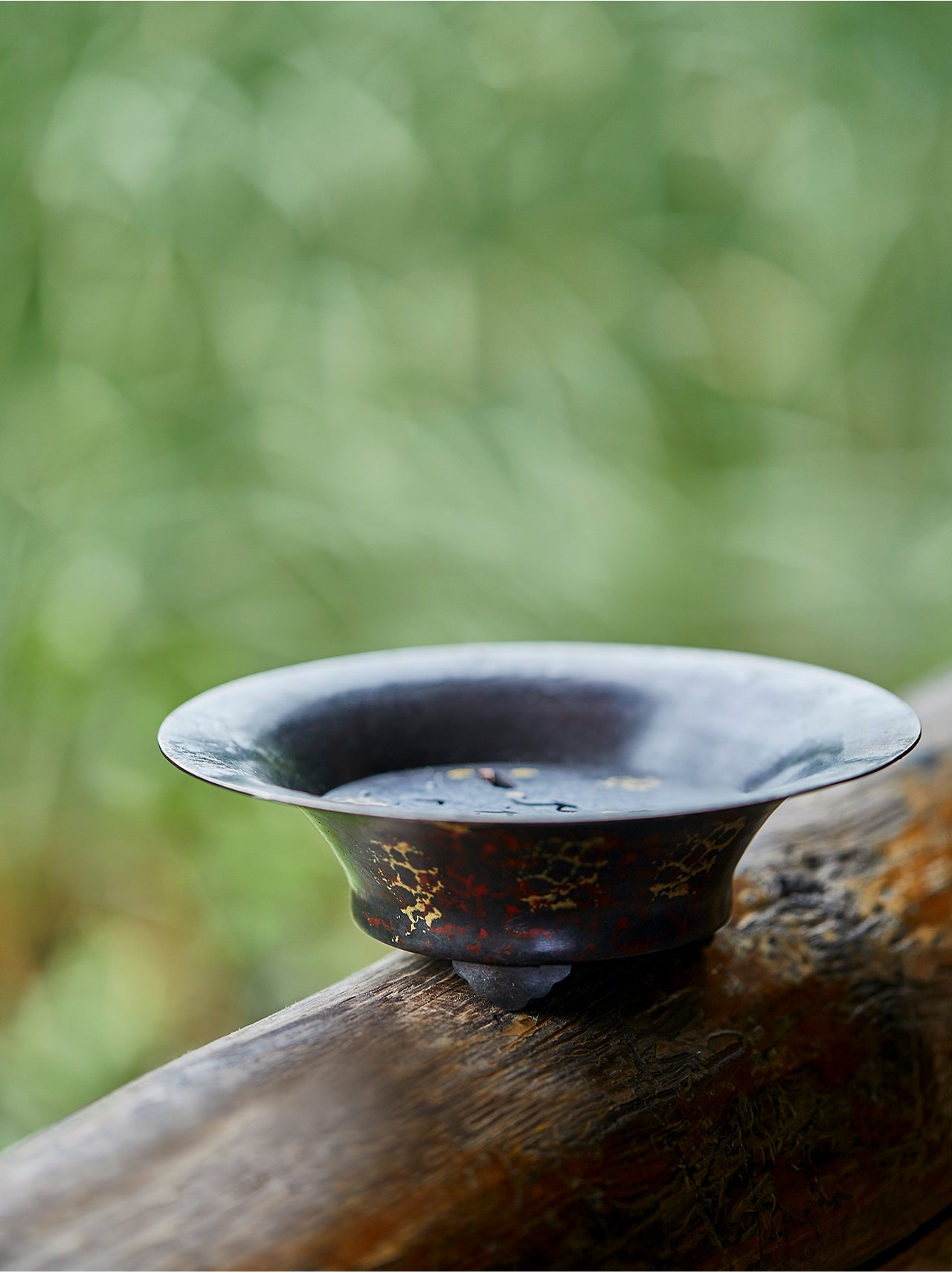 this tea tray is a hand-forged by experienced Chaozhou tin artisans ,the edge of this tea boat is made of silver gilt. The entire tray is made of copper.