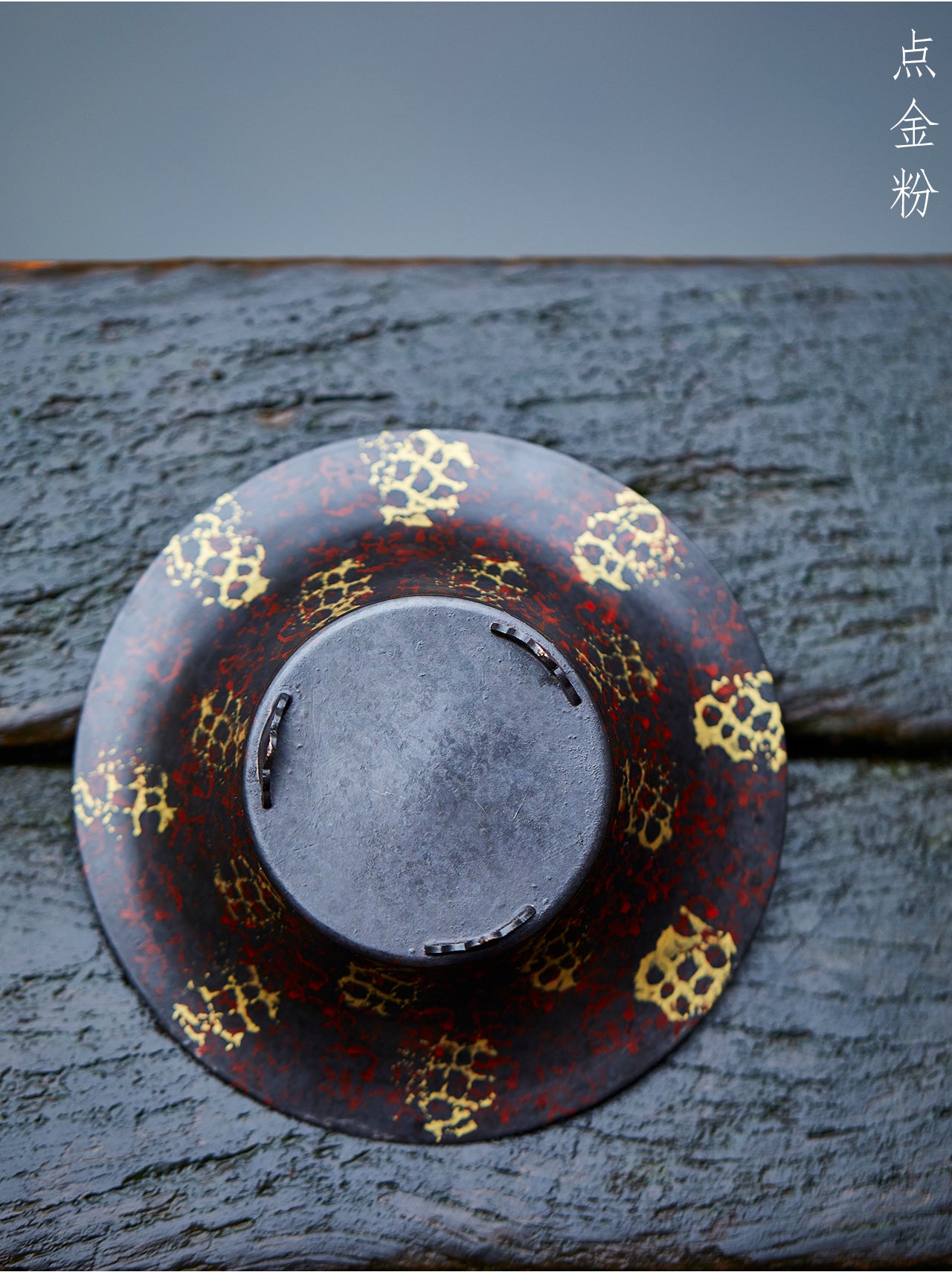 Silver GiltedTea Tray Copper Handforging High Feet Tea Boat Chaozhou Chinese Master Artwork Teapot Holder