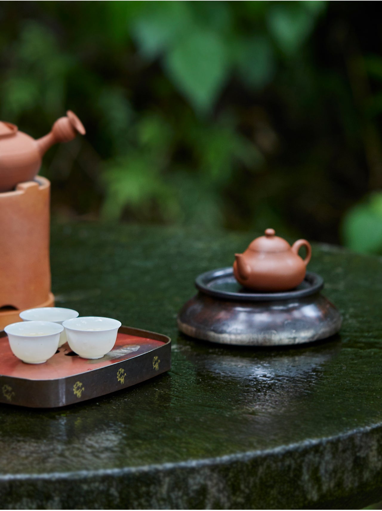 Tea Tray Purple Copper Handforging Tea Boat Chaozhou Chinese Master Artwork Teapot Holder Tea Boat