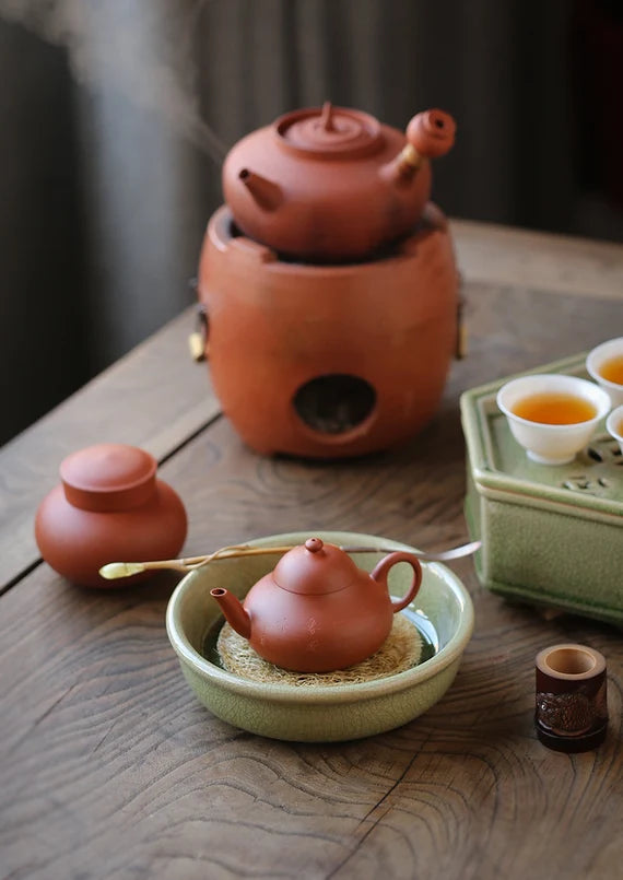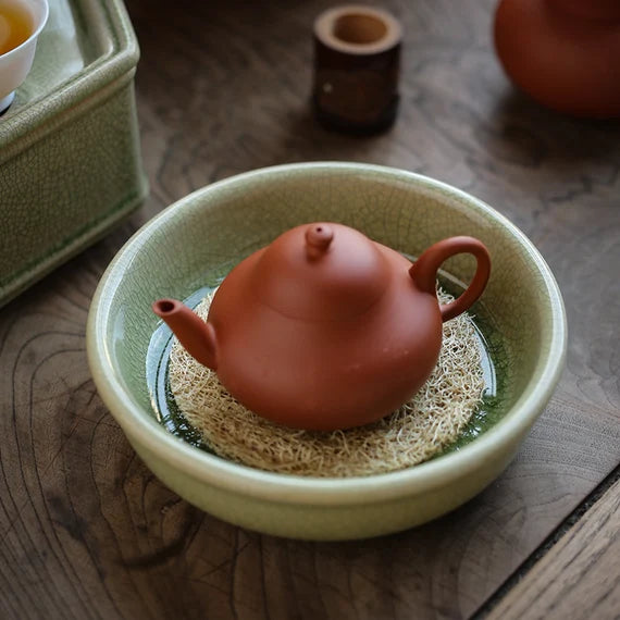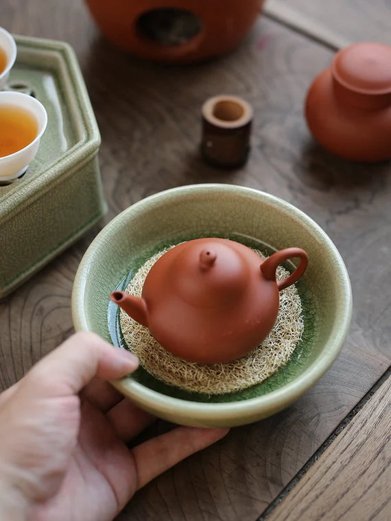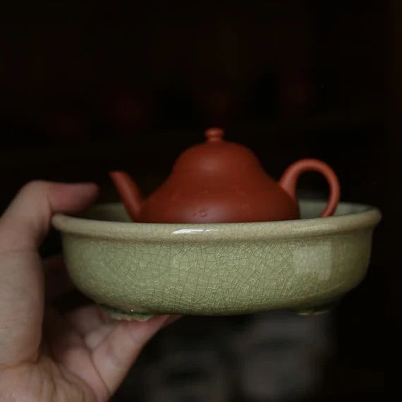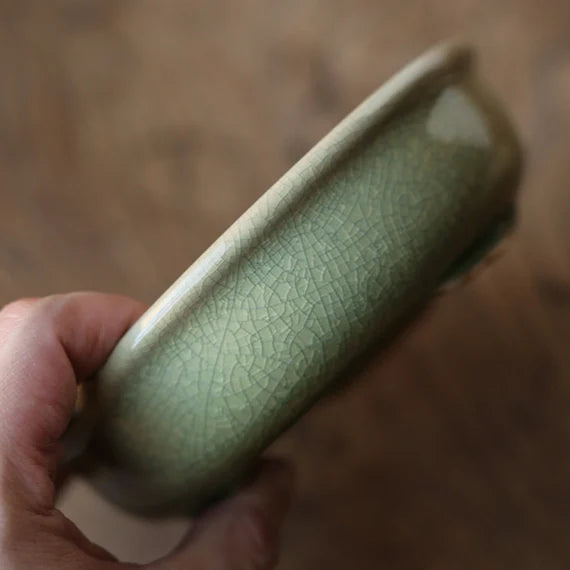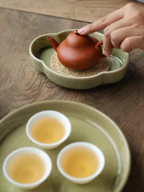 Zhangzhou Kiln Green-glazed Begonia Pot Carrying Open Teapot Holder Dry Tea Tray Chinese Master Artwork Teapot Holder Tea Boat