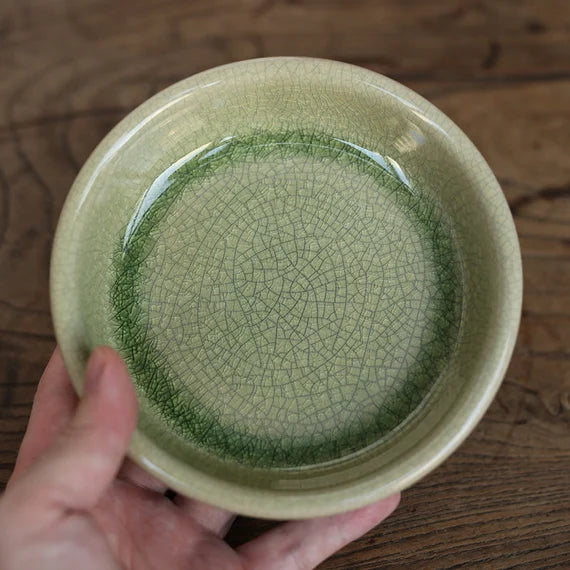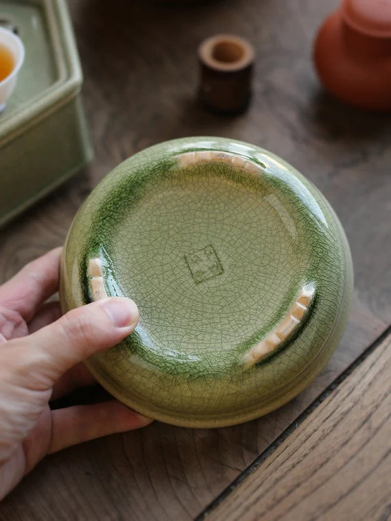 the green glazed Begonia crackle glazing ceramic tea tray is from Zhangzhou, Fujian province of China.
