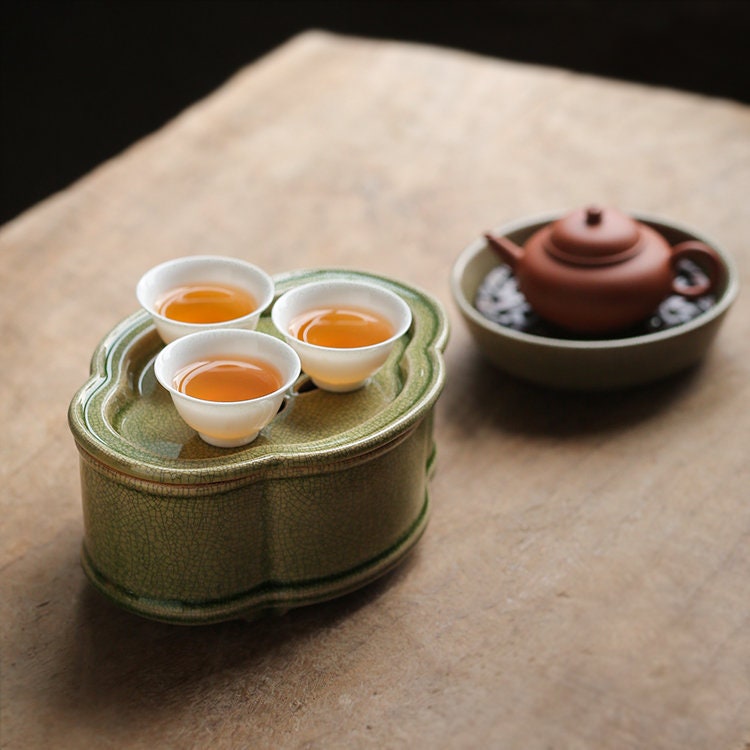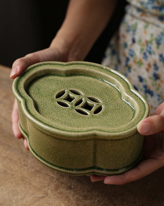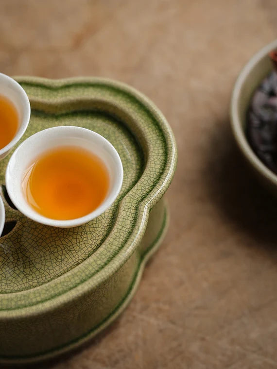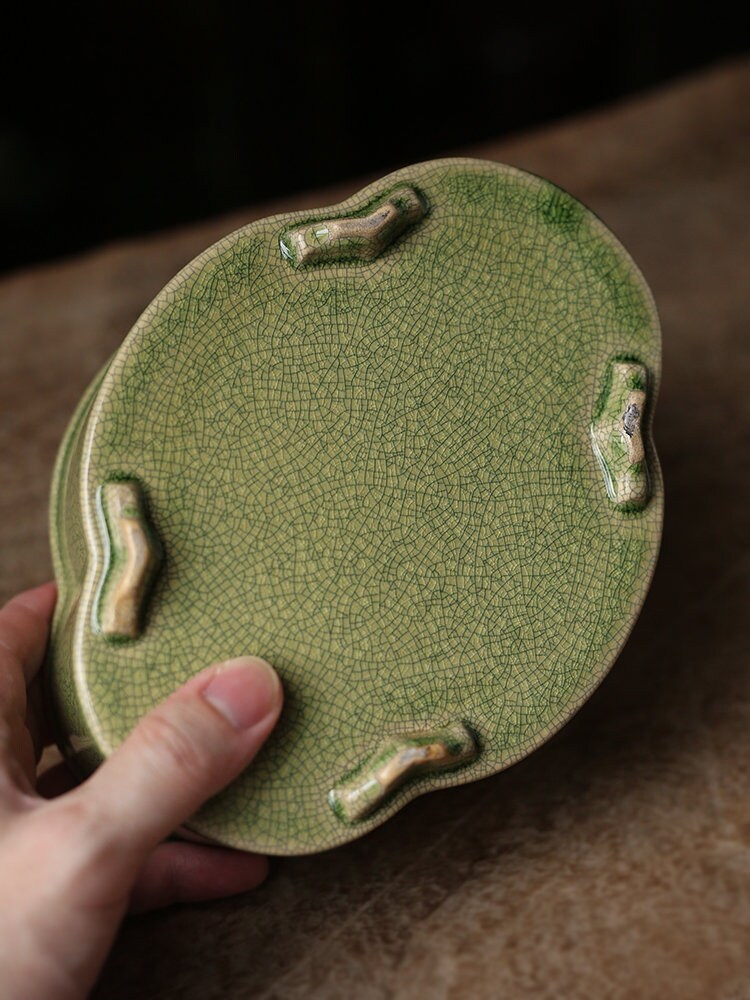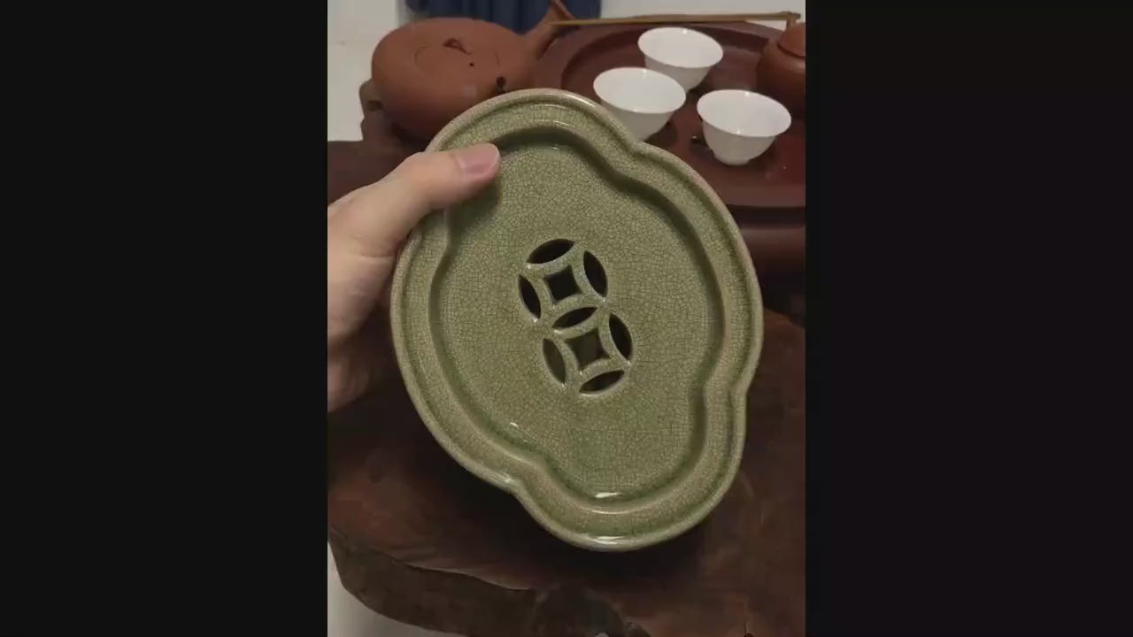 The green glazed Begonia crackle glazing ceramic tea tray is from Zhangzhou, Fujian province of China.