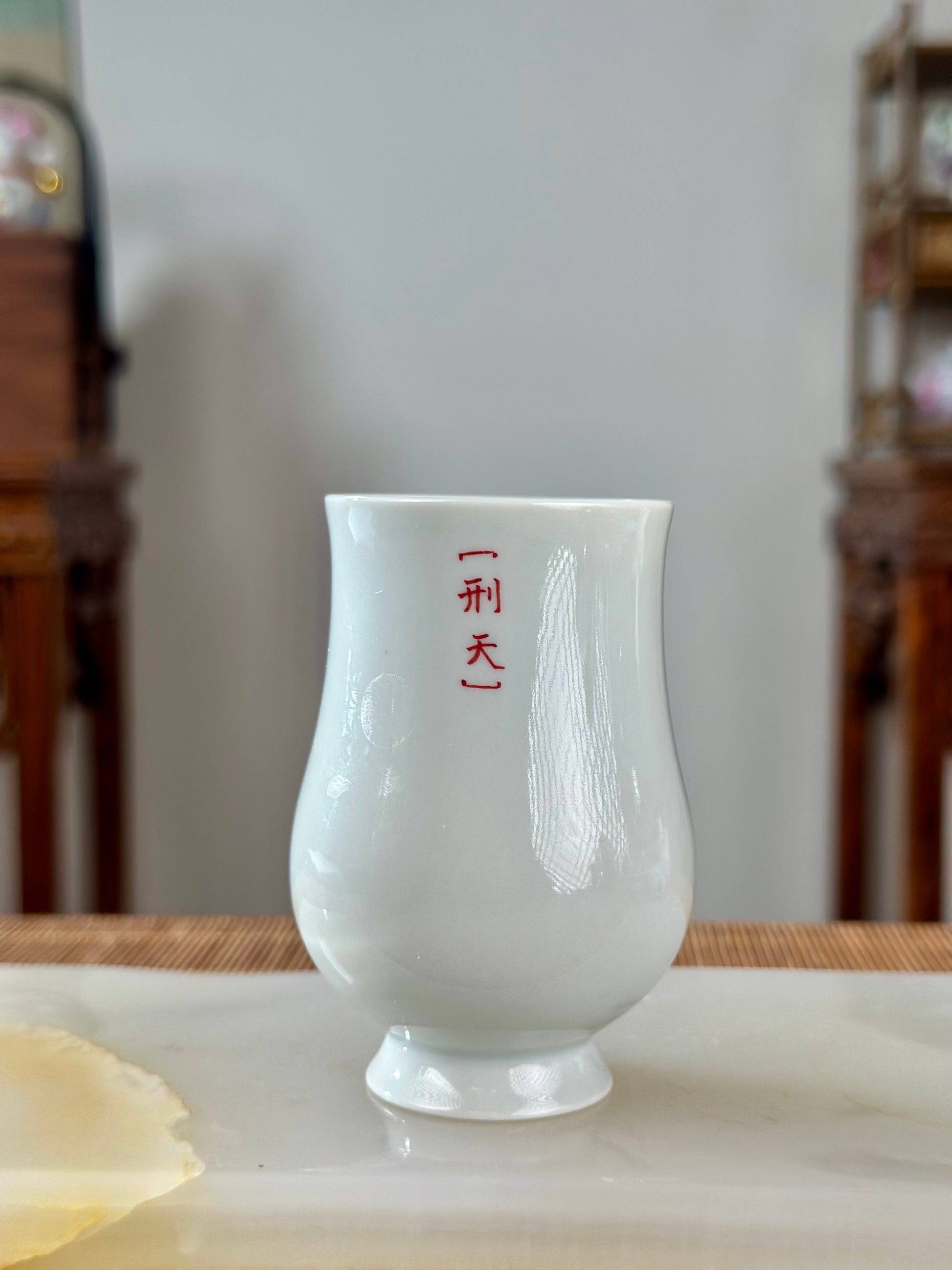 This Jingdezhen master piece is hand-painted with the Chinese mythical figure Xing Tian, made by Jingdezhen experienced ceramic painter.