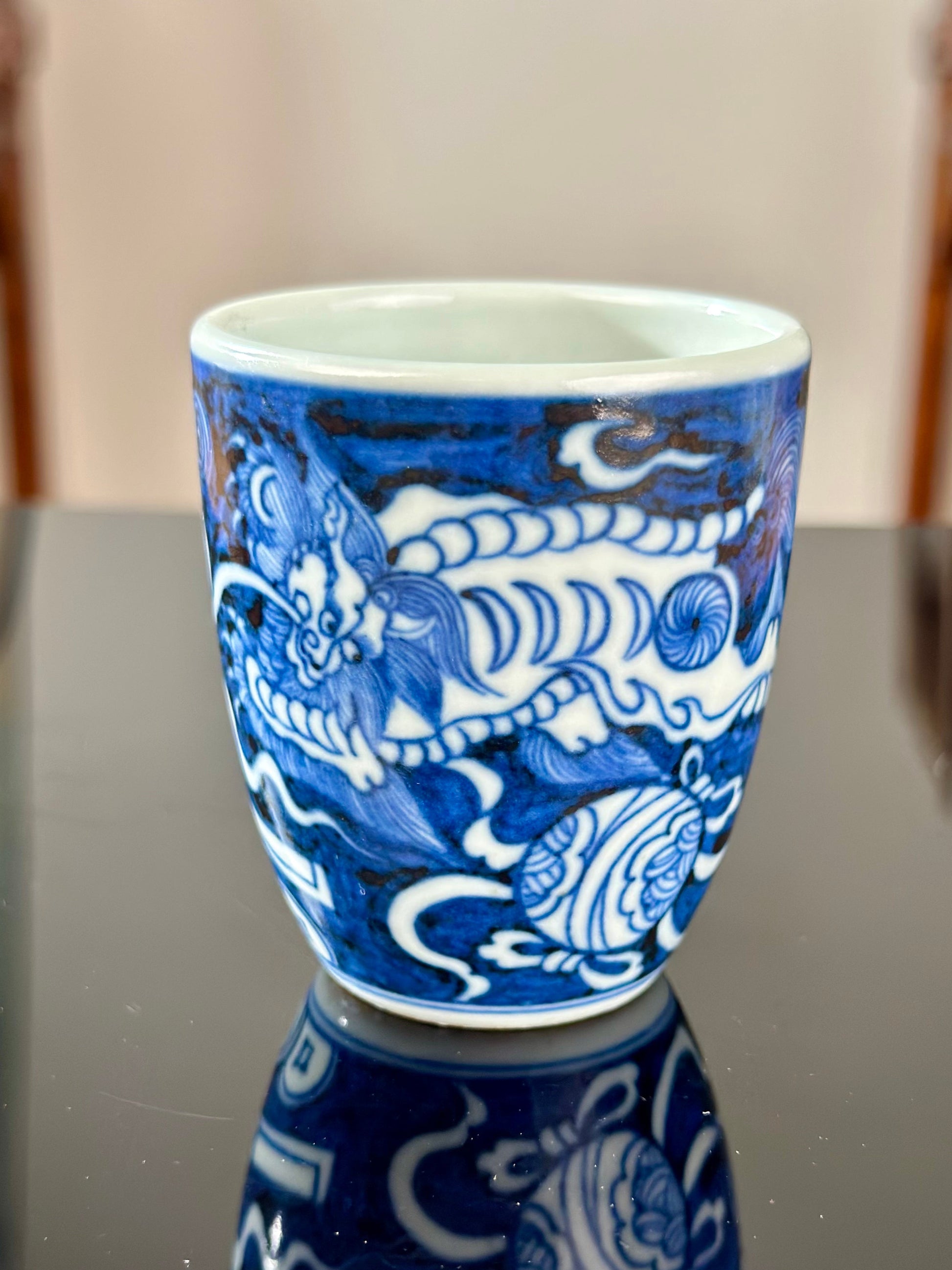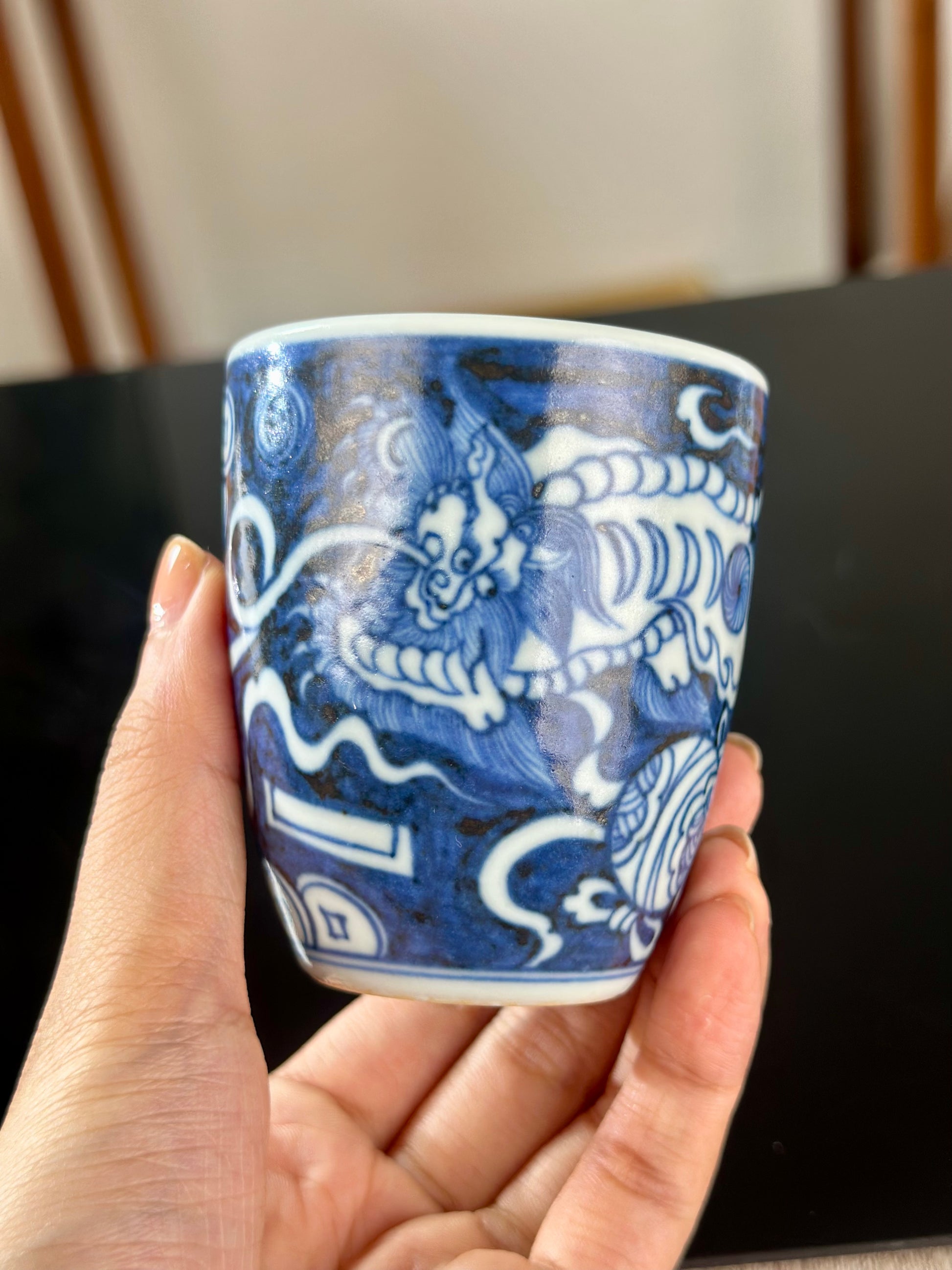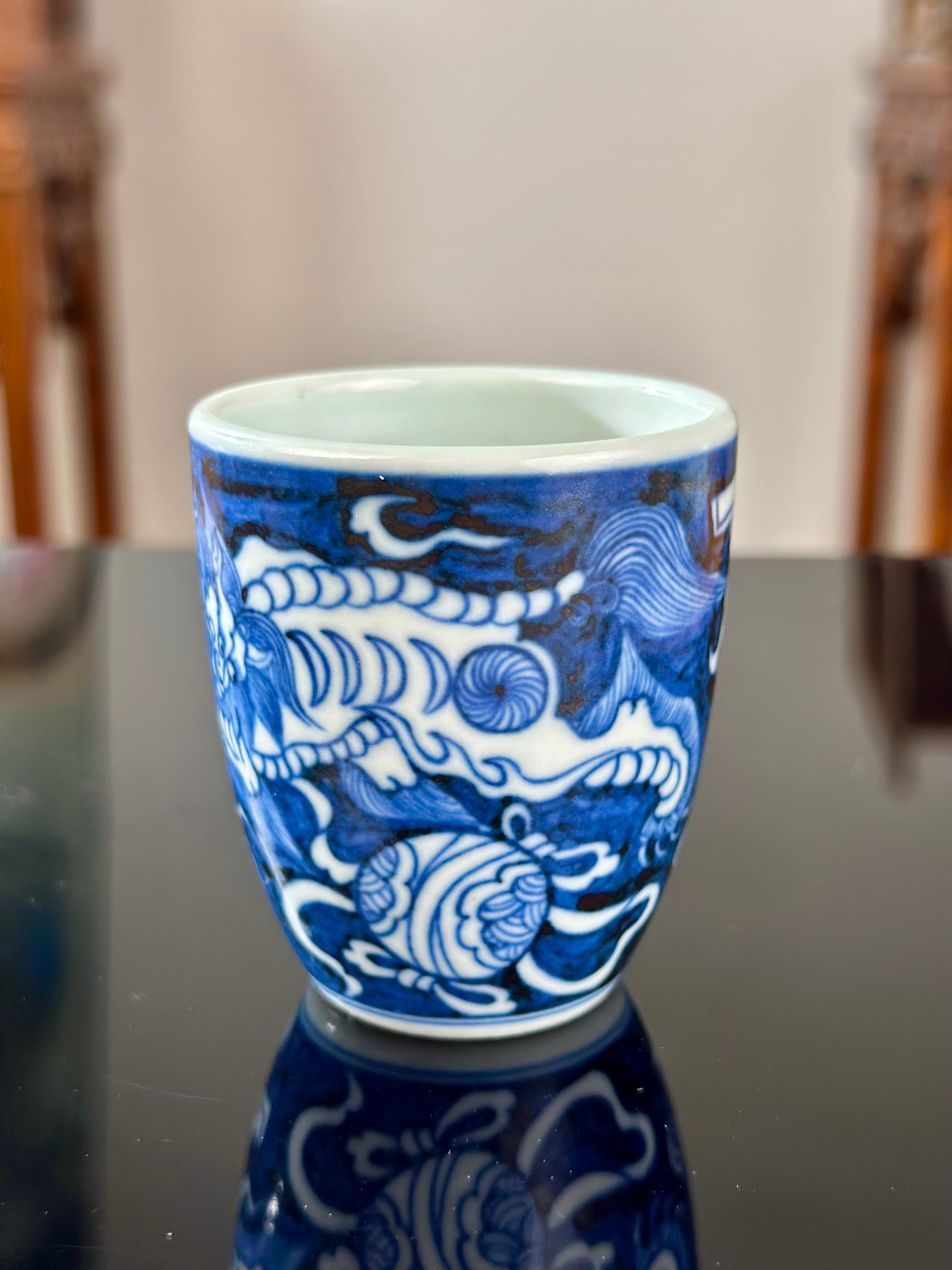 Hand Painted Chinese Blue And White Porcelain Classic Lion Pattern Jingdezhen Master Ceramic Artwork Teacup